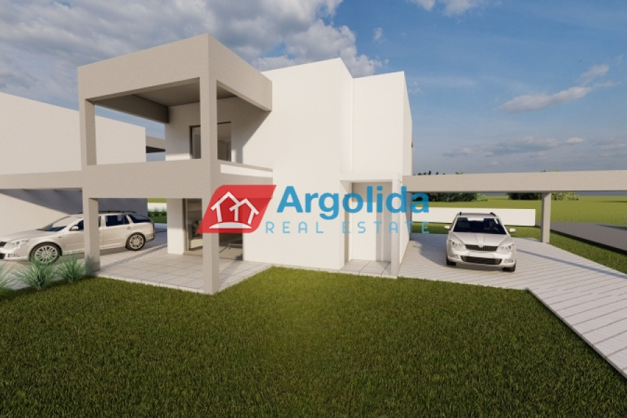The interior photos correspond to a similar residence recently delivered by the same construction company on an adjacent plot. In the area of Kokkoni, Velo, in a quiet and family-friendly environment and just 4 minutes by car from the organized beaches, two (2) under-construction detached houses of modern design are offered for sale. Each home is arranged on two levels with an internal staircase and features a 64 sq.m. ground floor with a bright, high-ceiling living area with kitchen–dining room and one (1) WC, while the 46 sq.m. upper floor includes three (3) bedrooms with built-in wardrobes and one (1) bathroom. These residences represent a high-quality, well-crafted construction, built with modern insulation standards, contemporary materials, and enhanced energy performance. Each property offers exclusive use of a 700 sq.m. plot, delivered with the outdoor area and garden fully landscaped, and ample space available for a swimming pool. Ideally located just 500 meters from the beach, these homes are an excellent choice for permanent living, a holiday residence, or a tourist rental investment.
