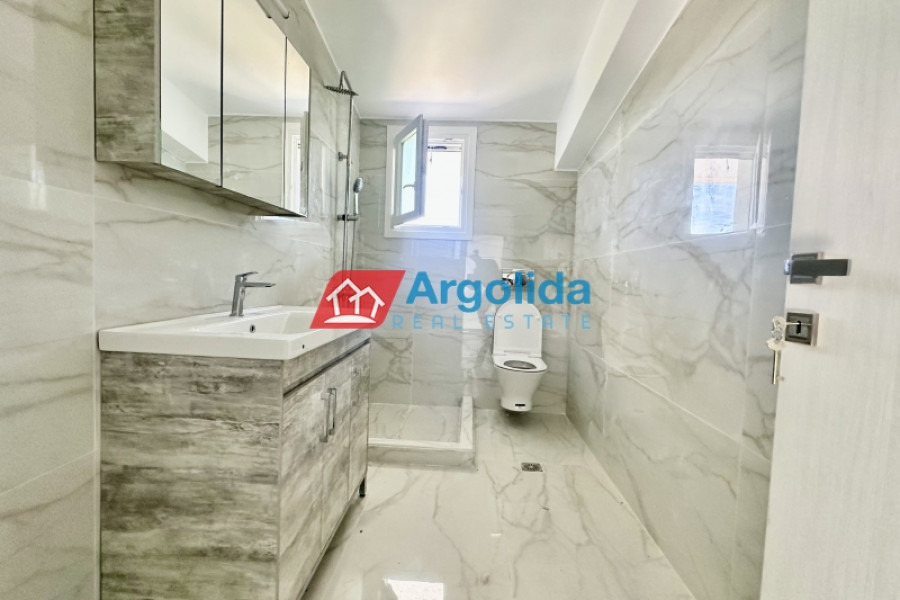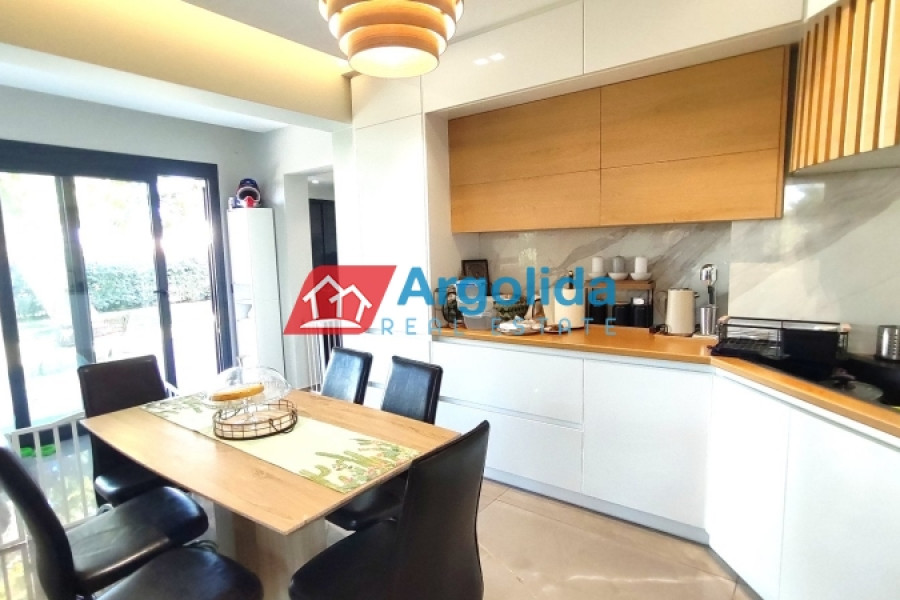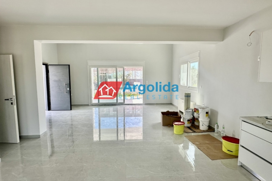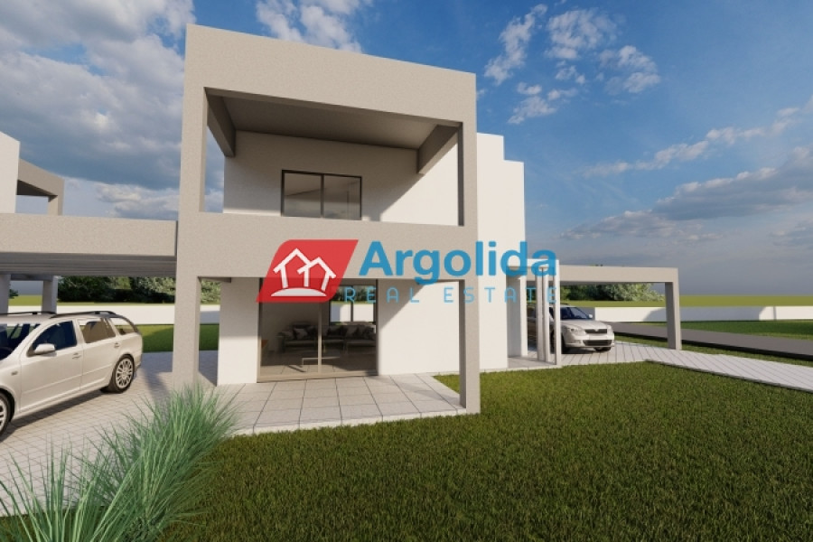 The interior photos correspond to a similar property recently delivered by the same construction company on an adjacent plot. Two independent under-construction maisonettes are available in a quiet location in Kokoni, Velo, just a 4-minute drive from the organized beaches. Each property is two-level with an internal staircase, featuring a 64 sq.m. ground floor with high ceilings, including a spacious living room, kitchen, dining area, and one WC. The 46 sq.m. first floor includes three bedrooms with built-in wardrobes and one bathroom. The construction is carefully executed with high-quality materials and modern insulation standards. Each maisonette has exclusive use of a 700 sq.m. plot, with landscaped gardens and outdoor space, and ample room for a future swimming pool. The beach is only 500 meters away, providing quick access to a peaceful and natural environment.