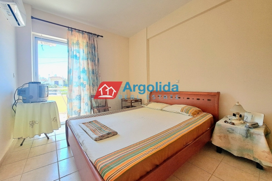In the beautiful seaside area of Nerantza, just 180 meters from the organized beach, a lovely apartment of 68 sq.m. is available for sale, ideal as a permanent residence or holiday retreat. Located on the elevated ground floor of a six-apartment building, it offers a peaceful living experience with excellent amenities. The property includes an open-plan living room, dining area, kitchen, two bedrooms with built-in wardrobes, and a bathroom. A large 25 sq.m. balcony provides ample space for relaxing outdoors. Both the apartment and the building are in excellent condition, and there is also a covered parking space for one car. Its strategic location, only 2.5 km from Velo and shops, and 7 km from the suburban railway with direct service to Athens International Airport, makes it ideal for those seeking easy access to the city and surrounding areas. A rare opportunity to own a quality apartment in one of Corinthia’s most charming seaside areas.