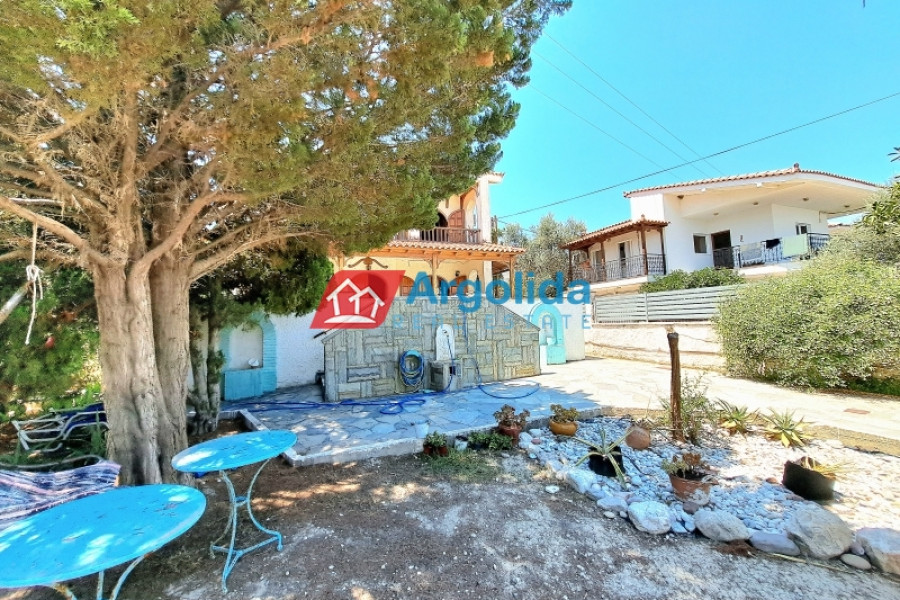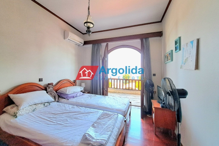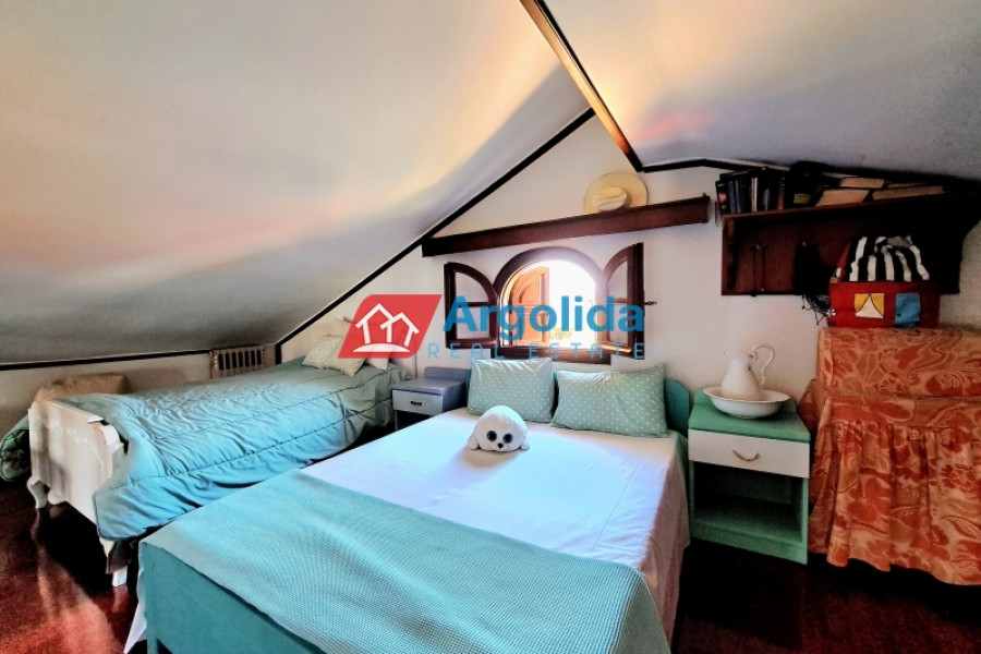 Property Code: 653081 - House FOR SALE in Xilokastro Kamari for € 800.000 . This 200 sq. m. furnished House consists of 3 levels and features 5 Bedrooms, Livingroom, Kitchen, 2 bathrooms and a WC. The property also boasts Heating system: Individual - Petrol, stone and wood floor, view of the Sea, Window frames: Wooden, parking, a storage unit 60 sq.m. sqm, garden, fireplace, A/C, alarm system, electrical appliances, solar-powered water heater, boiler, entry stairs, BBQ, attic, ceramic roof, open space, internal staircase, balconies: 100 sqm. The building was constructed in 1985 Plot area: 1000 s.q. . Building Energy Rating: E Distance from sea 20 meters, Distance from the city center: 1600 meters, Distance from nearest village: 1000 meters, Distance from nearest airport: 150000 meters, Near Xylokastro, a seaside family home with a total area of 200m on a 1000m² plot is for sale. The entrance to the home is found on the elevated ground floor opening to a spacious living-dining room with fireplace, adjoining kitchen, Wc, and an expansive 60m² terrace. Upstairs there are four bedrooms and two bathrooms and a balcony with sea views. An attic, currently an open 60m² space could be reconfigured as two (2) bedrooms, and/or office space and playroom. The semi-basement has a 60m² storage space.The large garden includes a BBQ area and has open parking for two vehicles. The property is well maintained and is located just 1600 meters from the suburban railway station with a direct route to Athens airport.