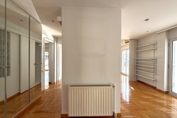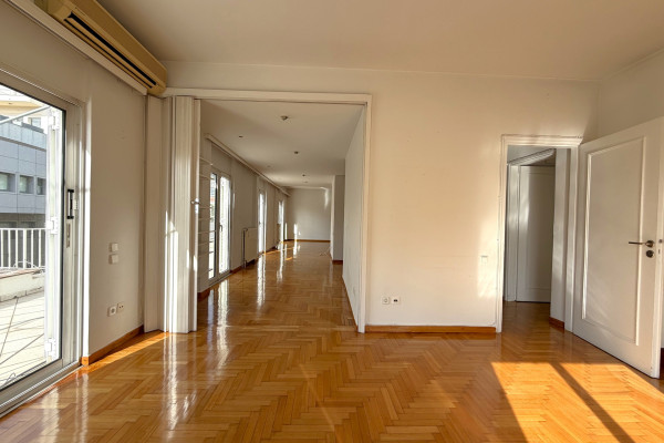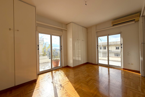Penthouse Floor apartment 120 sq.m. Luxurious, 5th floor corner penthouse in a prime location of Kolonaki. It has 2 bedrooms (or 1 Master & Office), a spacious living room, a closed kitchen with appliances and a large terrace with a view. Renovated, with natural gas, A/C, solar and security door. Bright, airy and ideal for a family or business home, next to the Metro. Price: €2,000