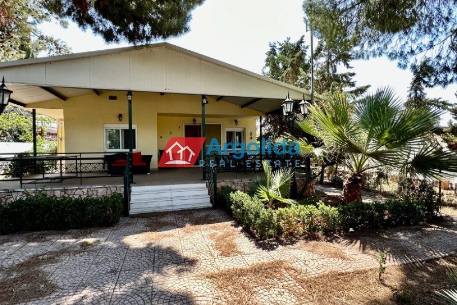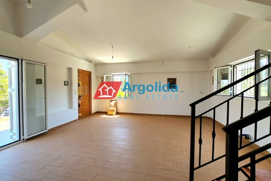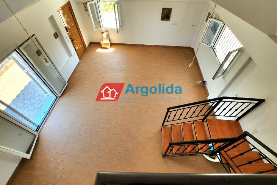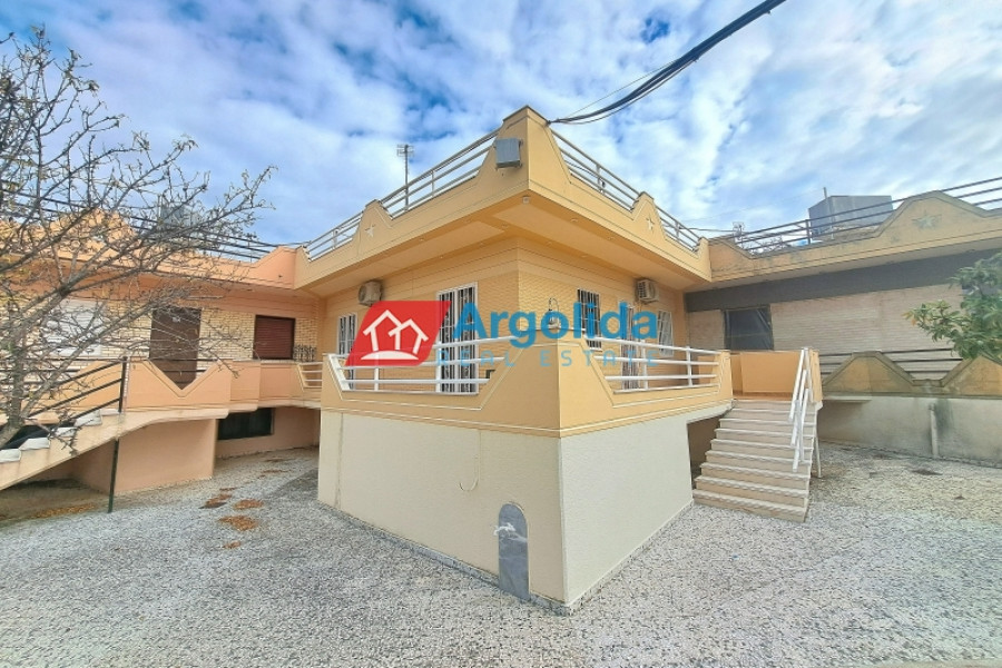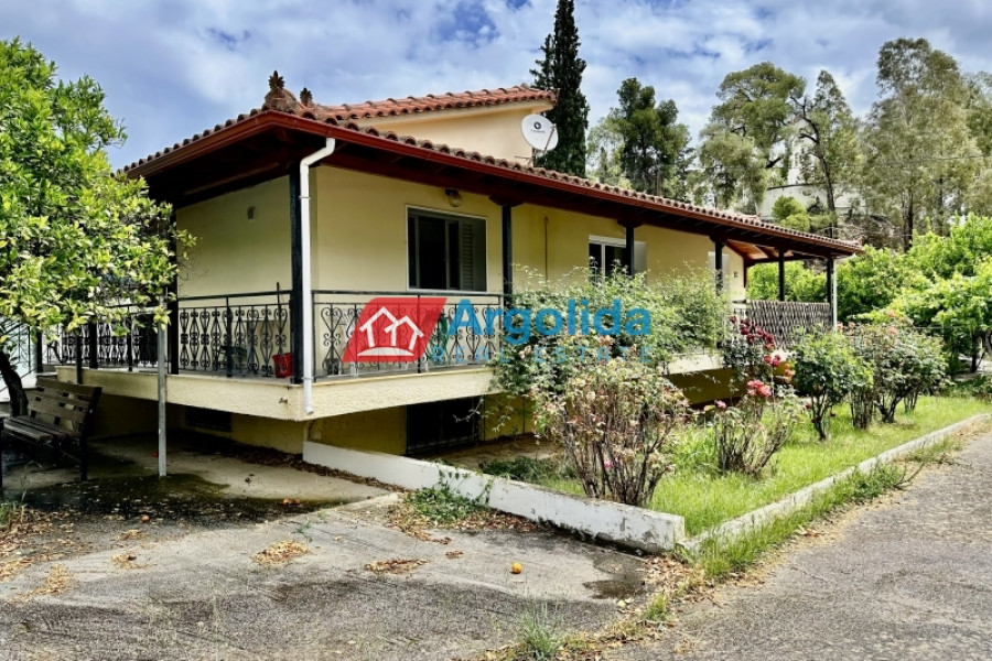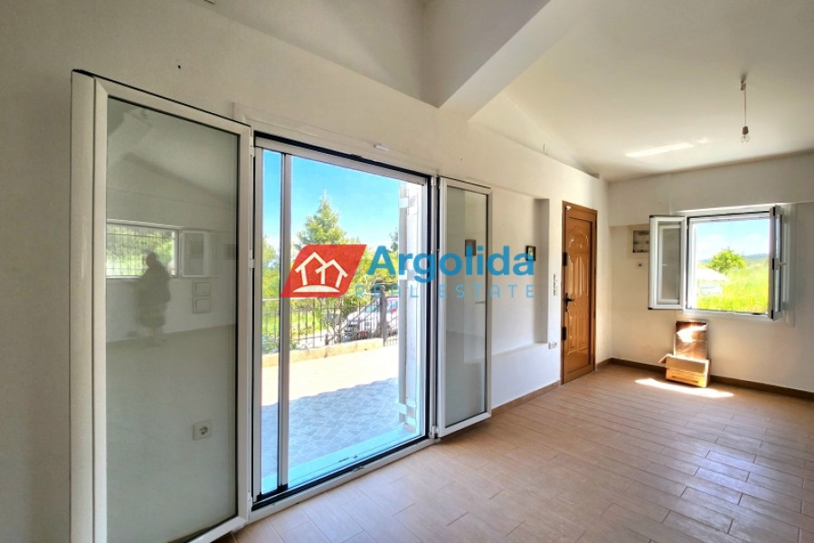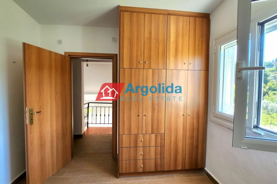 This detached house of 128 sq.m., fully renovated in 2015, is arranged over two levels connected by an internal staircase, set within a 4,000 sq.m. plot featuring paved areas, a landscaped garden and a large olive grove, enjoying a peaceful countryside location with panoramic views over the plain and the Corinthian Gulf. The elevated ground floor comprises a spacious living-dining area, separate kitchen, one comfortable bedroom, a large bathroom and a small storage room, while the upper level offers two bedrooms with fitted wardrobes and a WC; there are also provisions for an additional kitchen and bathroom. The property is equipped with a solar water heater, security door and aluminium frames with double glazing and insect screens, offering an ideal combination of comfort, functionality and natural beauty.
