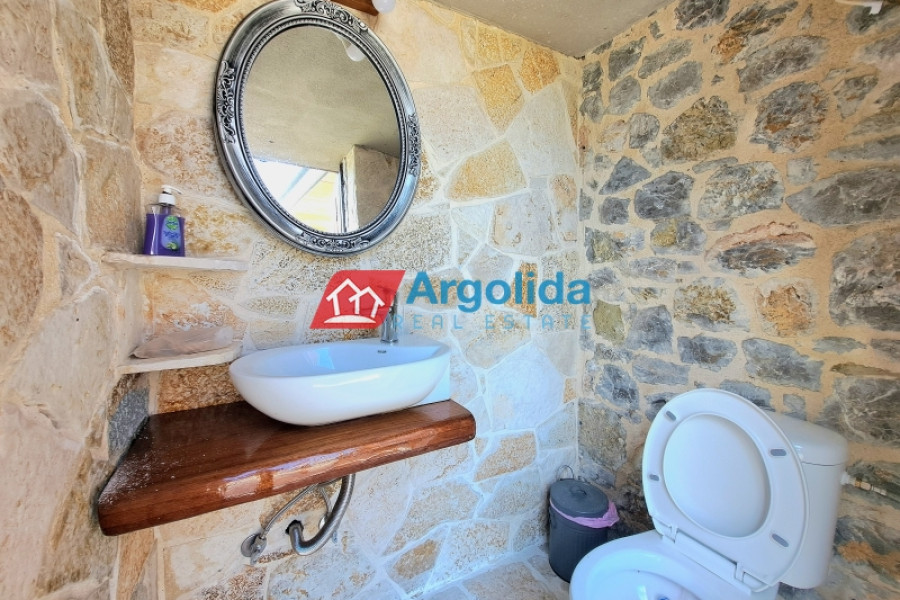 Located in the quiet and picturesque area of Lerna, Argolis, between the seaside villages of Mylos and Kiverni, this old traditional stone house built before 1955 offers a rare opportunity for restoration. The property is arranged over two levels with a total area of 85 m², connected by an external staircase. The ground floor includes a spacious open area and a small storage room, while the first floor consists of three rooms. Without a kitchen or bathroom, the house provides the perfect chance for complete renovation and personalized design. Situated on a plot within the village, with frontage on the old provincial road Argos–Tripolis, it offers an additional building allowance of about 300 m², ideal for expansion or further development. Only 2.5 km from the beaches of Mylos and Kiverni, the location makes it perfect for a holiday home or tourist investment. Furthermore, the property is just 14 km from Nafplio and 60 km from the Corinth suburban railway, ensuring easy access to major destinations and services. With its authentic charm, prime location and development potential, this traditional home presents an excellent opportunity for anyone wishing to restore a character property close to the sea in the beautiful region of Argolis.
