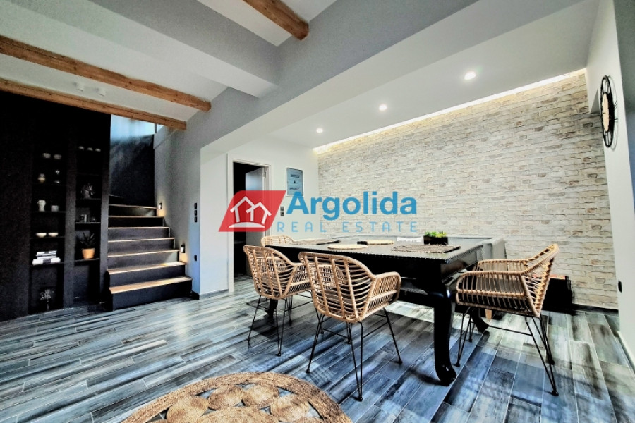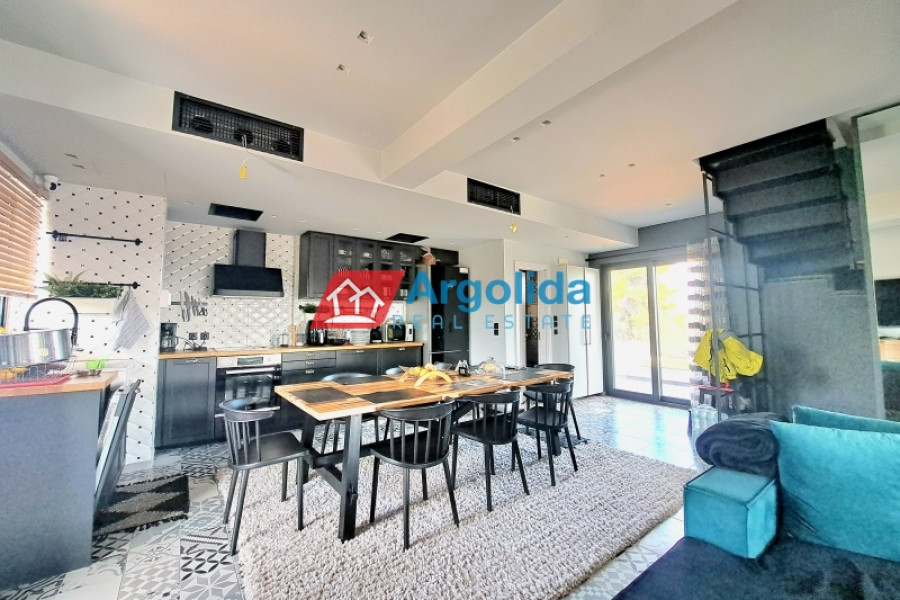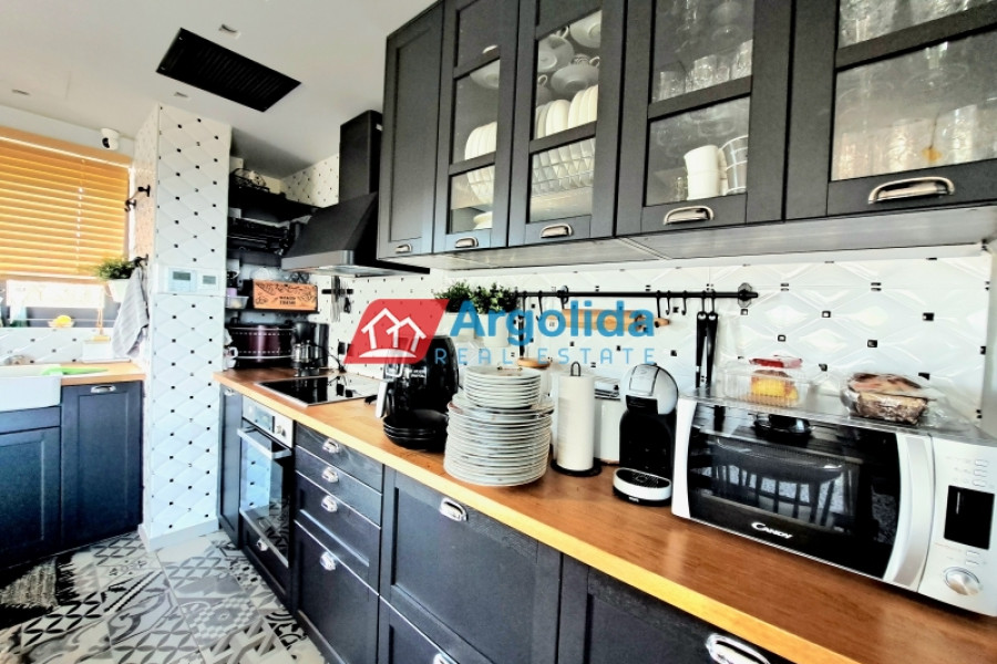 Property Code: 652708 - House FOR SALE in Megara Kineta for € 490.000 . This 220 sq. m. House consists of 3 levels and features 5 Bedrooms, an open-plan kitchen/living room, 4 bathrooms . The property also boasts Heating system: Fan coil, tiled floor, view of the Mountain, Window frames: Aluminium, Security door, parking, a storage unit 70 sq.m. sqm, garden, fireplace, swimming pool, A/C, alarm system, electrical appliances, awnings, insect screens, double-glazed windows, solar-powered water heater, entry stairs, BBQ, open space, internal staircase, balconies: 80 sqm. The building was constructed in 2020 Plot area: 5000 s.q. . Building Energy Rating: B Distance from sea 12000 meters, Distance from the city center: 9000 meters, Distance from nearest village: 7000 meters, Distance from nearest airport: 80000 meters, A 230m² three-level, luxury villa built on a 5000m² plot in the area of Zachouli, Megaron is for sale.