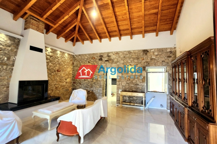Property Code: 582613 - House FOR SALE in Kranidi Agios Aimilianos for € 450.000 . This 160 sq. m. House is on the Ground floor and features 4 Bedrooms, 2 Livingrooms, 2 Kitchens, 2 bathrooms . The property also boasts Heating system: Air conditioner, tiled floor, view of the Sea, Window frames: Wooden, Armourplated door, parking, a storage unit 5 sq.m. sqm, garden, fireplace, A/C, open space, balconies: 40 sqm. The building was constructed in 1985 Plot area: 1050 s.q. . Building Energy Rating: D Distance from sea 200 meters, Distance from the city center: 6000 meters, Distance from nearest village: 4000 meters, Distance from nearest airport: 190000 meters, In the seaside settlement of Agios Emilianos, near Portoxeli, a detached home on a 1050m² tree-lined plot is for sale. The residence consists of two separate levels of 80m², of which, the ground floor is semi-finished (it is plastered).