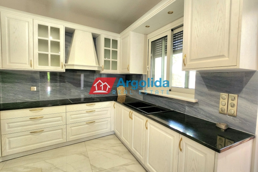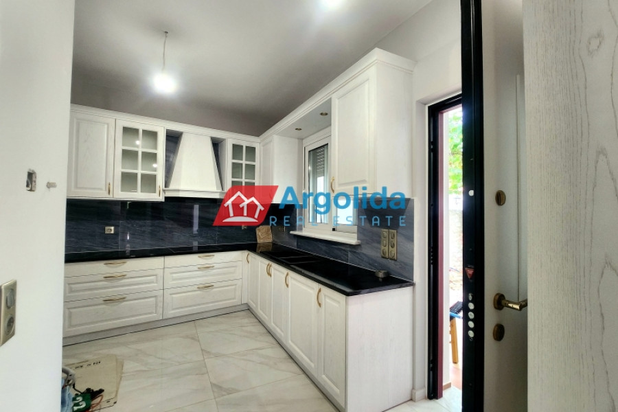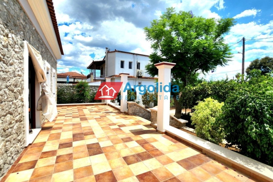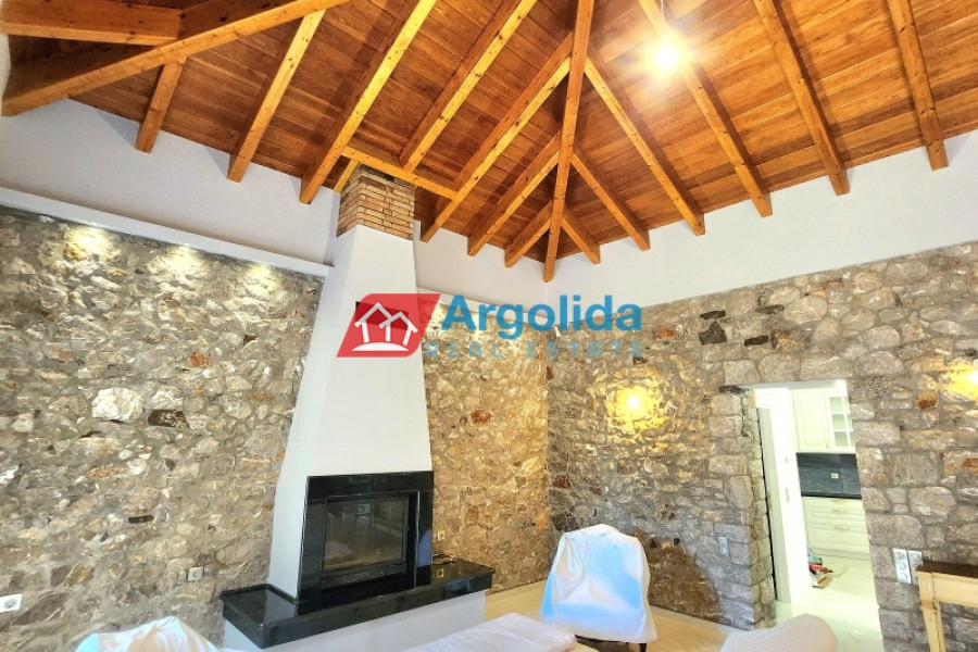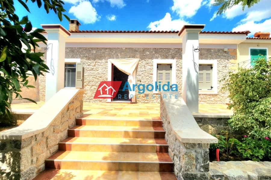 In the charming seaside area of Asini, just minutes from Tolo and the historic town of Nafplio, this 97 sq.m. stone-built detached house, set on a 430 sq.m. plot, perfectly combines traditional architecture with premium-quality renovation. Located only 1.8 km from the beach, it offers a warm, welcoming living environment ideal for both permanent residence or a vacation home. The interior has been carefully designed for functionality and elegance, featuring a spacious living room with a granite energy fireplace as the focal point. The custom-built kitchen stands out with its exceptional craftsmanship and high-end finishes. The master bedroom offers a private en-suite, while a second bathroom serves the rest of the space. The 2024 renovation included the use of top-tier materials such as Italian tiles, double-glazed aluminum windows, Italian roof tiles, security doors, and Legrand electrical equipment. The house also includes pre-installation for a heat pump, and the excellent insulation ensures energy efficiency and year-round comfort. A unique opportunity for those seeking a quality, stylish, and efficient home in one of Argolis’ most desirable seaside locations.