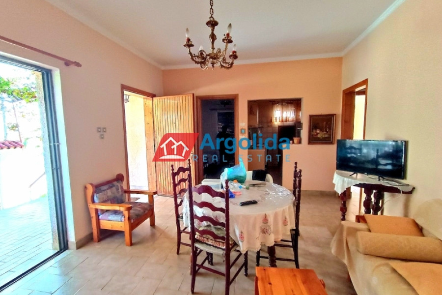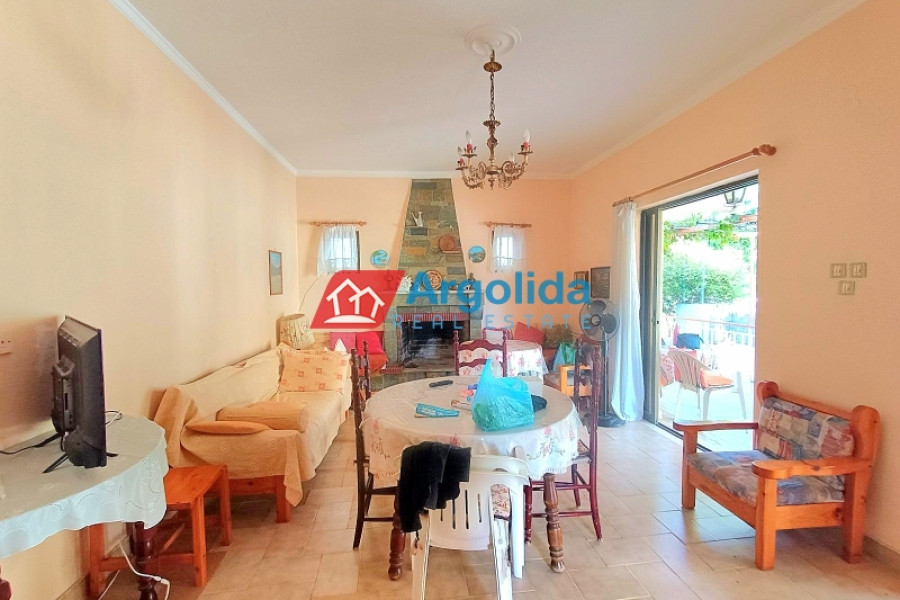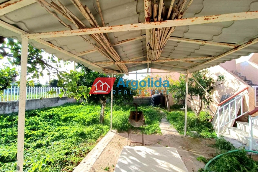 Furnished detached house of 80 sq.m. for sale on a 300 sq.m. plot, featuring a 170 sq.m. garden with fruit trees and the right to build an additional floor, offering excellent potential for permanent residence or investment. The house consists of a living room with a semi-separate kitchen and a small internal storage room, three bedrooms, and one bathroom, and includes tiled floors, aluminum window frames, a fireplace, air conditioning (A/C), and large verandas that enhance natural light and outdoor living. Additional features include a private borehole, a small storage area under the veranda, and on-site parking, ensuring full functionality and autonomy. The location offers a quiet residential setting, while the extra building rights add long-term value. This is a fully equipped single-family home combining comfort, independence, and development potential, ideal for living or investment in a well-connected area.