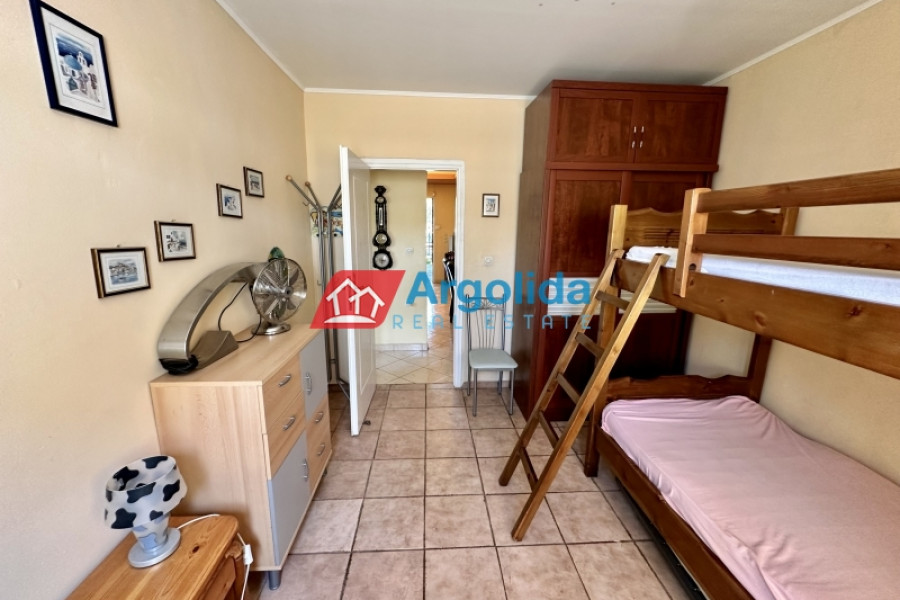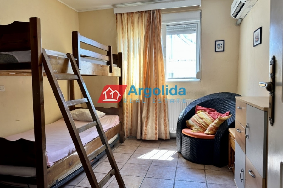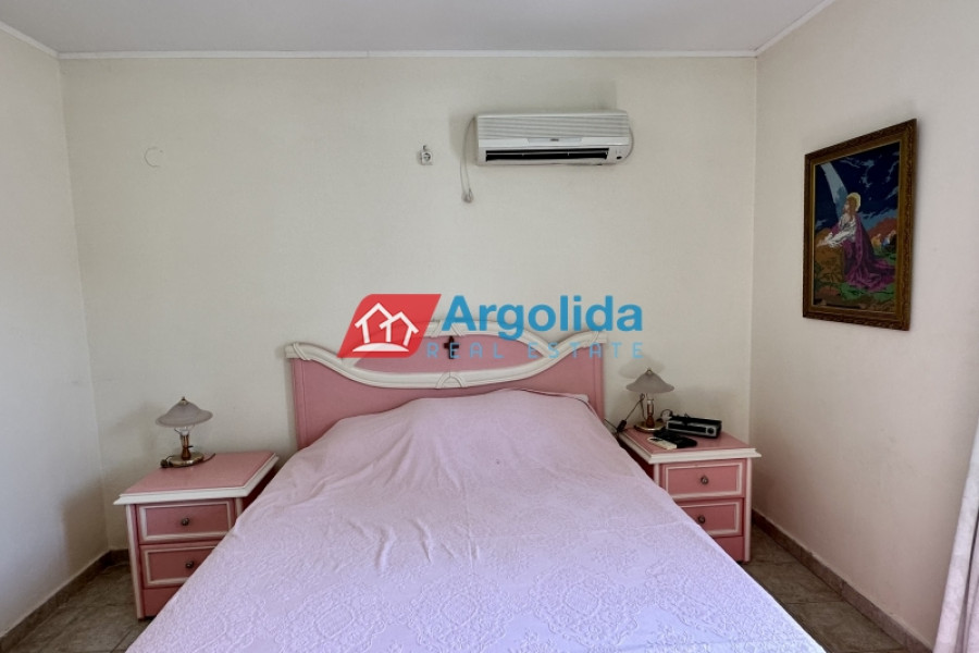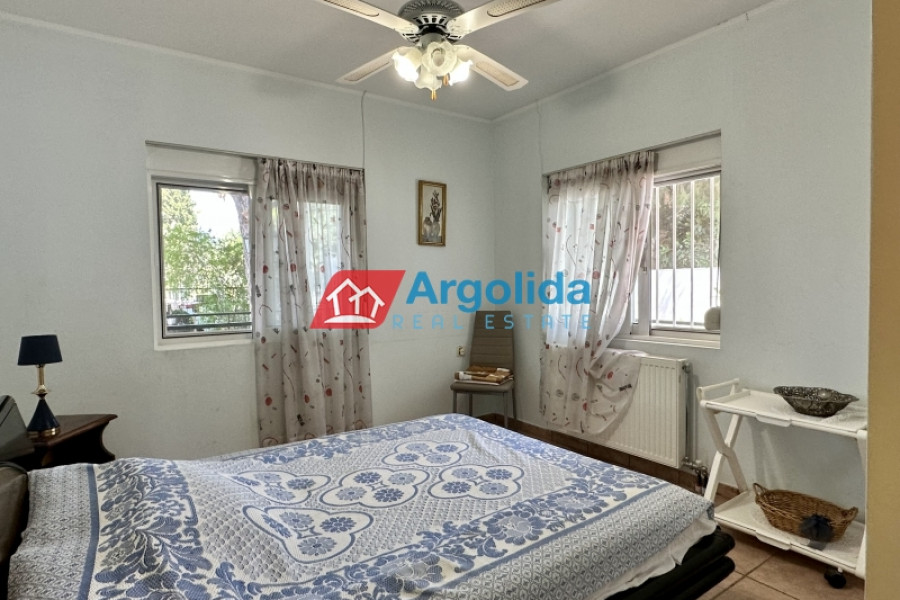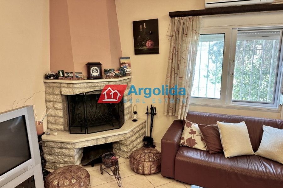 For sale: a 130 sq.m. detached house in Agios Charalampos, Isthmia, Corinthia, set on a 500 sq.m. plot, ideal as a holiday home. The property features a separate kitchen, a living room with fireplace, 4 bedrooms, 1 bathroom, storage room, a large entrance veranda, a spacious garden, and parking space. Located in a quiet neighborhood surrounded by trees, the house is just 200 meters from the sea, offering peace, comfort, and easy access to the beach. This is an excellent opportunity for anyone looking for a calm and functional holiday residence.
