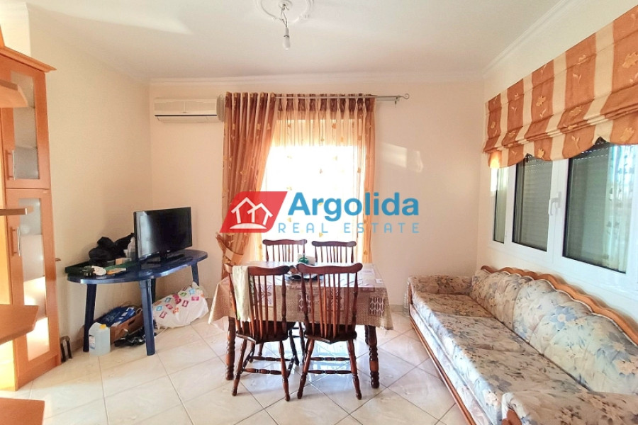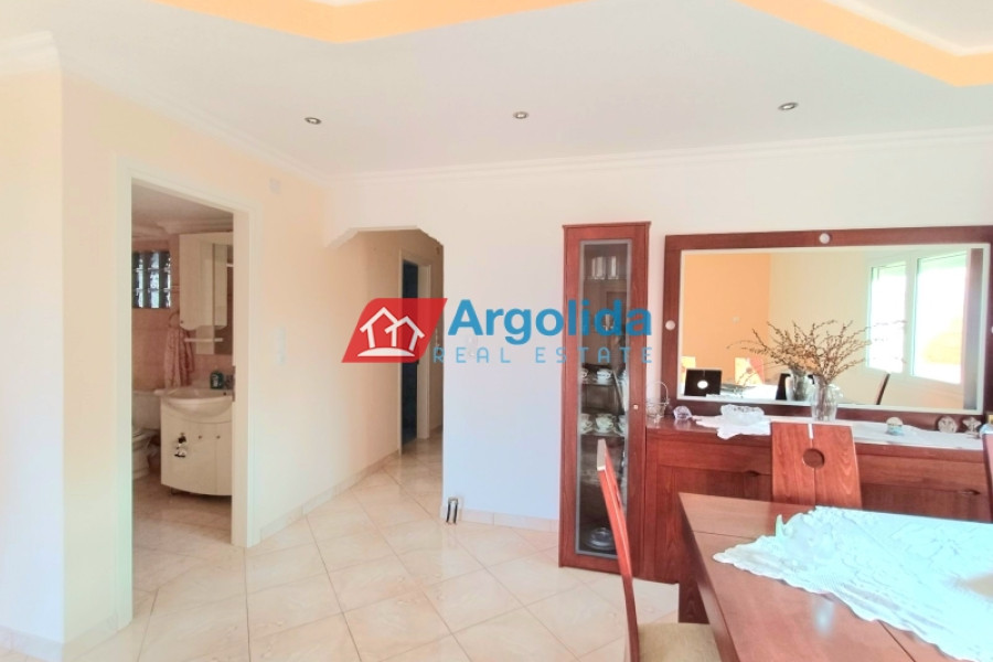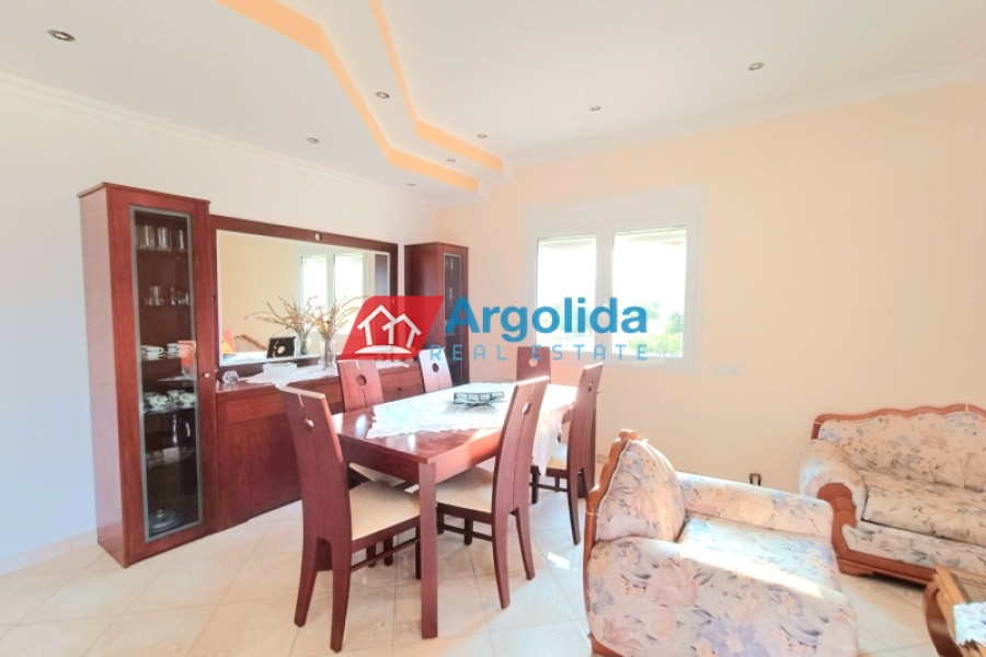 A raised detached house is for sale in Poullitsa, with a total area of 130 sq.m., consisting of 2 independent levels. The main residence is on the elevated floor and features 3 bedrooms with built-in wardrobes, 2 bathrooms, and a spacious, bright open-plan kitchen-living-dining area with access to a large terrace. The semi-basement includes a 90 sq.m. autonomous apartment, currently unfinished. The property is sold fully equipped and furnished, offering comfortable living, investment potential, and immediate move-in readiness.