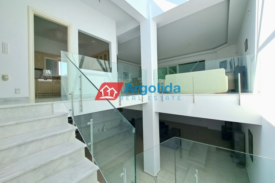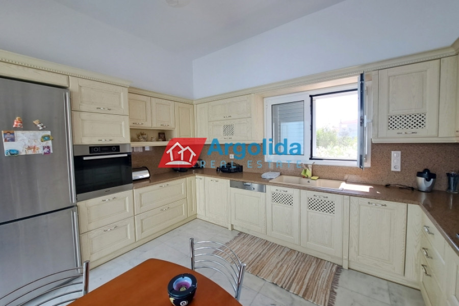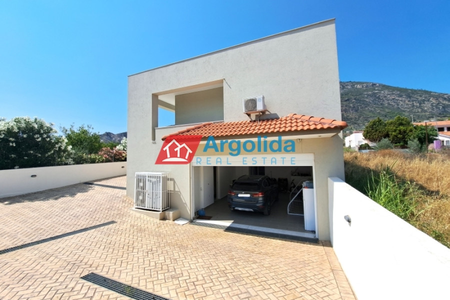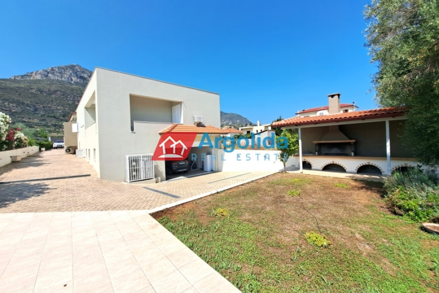 Property Code: 652327 - House FOR SALE in Xilokastro Kamari for € 700.000 . This 304 sq. m. furnished House consists of 2 levels and features 4 Bedrooms, an open-plan kitchen/living room, 3 bathrooms and a WC. The property also boasts Heating system: Heat pump, marble floor, view of the Mountain, Window frames: Aluminum - Sliding, Armourplated door, elevator, accessibility for people with disabilities, parking, a storage unit 40 sq.m. sqm, garden, fireplace, A/C, alarm system, electrical appliances, awnings, insect screens, double-glazed windows, solar-powered water heater, entry stairs, BBQ, satellite dish, open space, internal staircase, balconies: 50 sqm. The building was constructed in 2010 Plot area: 680 s.q. . Building Energy Rating: D Distance from sea 400 meters, Distance from the city center: 4500 meters, Distance from nearest village: 280 meters, Distance from nearest airport: 155000 meters, In Kamari Xylokastro and at a distance of 400 meters from the sea, an excellently constructed detached house with a large garden is for sale. The property consists of the semi-basement with a spacious living room with fireplace, dining room, kitchen, one (1) bedroom with its own bathroom, laundry room, two (2) internal storage rooms (total area 40 sq.m.) and a closed garage for two (2) cars. Through a marble staircase with a skylight we ascend to the raised ground floor where we also find a spacious open-plan living room with fireplace, dining room and open kitchen, two (2) bathrooms and three (3) bedrooms (one with its own bathroom) as well as one (1) bath. Characteristic of the property is the high quality construction and oi facilities/wiring for future installation of Home cinema, telephone exchange, cable TV in all areas, speakers in the garden and for a heated pool table. The residence also has a tractor and a vacuum cleaner with a connection to the central bin. In the garden there is a BBQ area with enough space for outdoor seating and also for the construction of a swimming pool. The detached house offers a feeling of luxury and is only a 5-minute walk from Xylokastro.