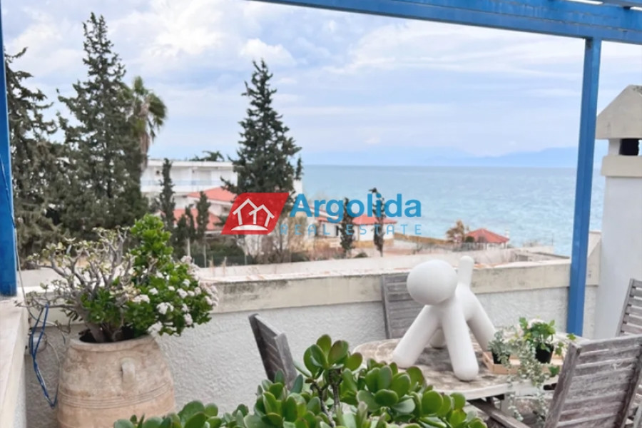 In Vrachati, Corinthia, a unique seafront detached maisonette of 65 sq.m. is for sale, just 20 meters from the sea, arranged over three levels, corner, airy and in excellent condition, featuring 2 bedrooms, 1 bathroom, a fully equipped kitchen, air conditioning, fireplace, awnings and stunning sea views from the roof terrace/roof garden, ideal as a holiday home or investment property for short-term rentals, thanks to its direct beach access and prime location close to cafes, restaurants and shops.
