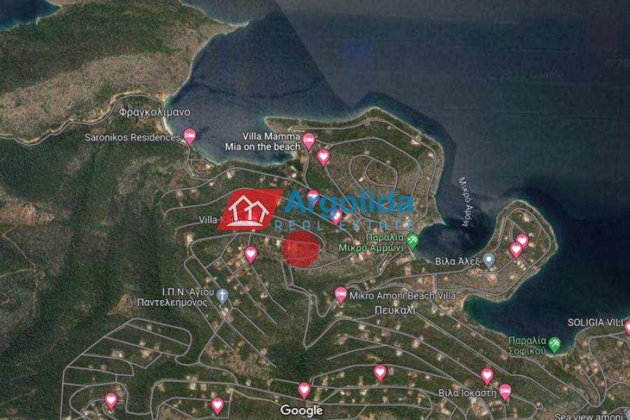In the green pine forested area of Amoni in Solygeia Corinthia, a building plot is for sale within the urban plan of the settlement of the bank of Greece. The plot has a slight slope, frontage on a municipal road, electricity supply and panoramic views to the sea. It has an area of 1,000m² with a building factor of 0.4 and a maximum building size of 400m² for the construction of a house (or more). The plot is adjacent to a municipal road with western orientation and next to the plot there are several newly built houses. It is 9 km from Sofiko, 20 km from the area of Epidaurus and 135 km from Athens airport while in a very close distance there are two beautiful beaches.