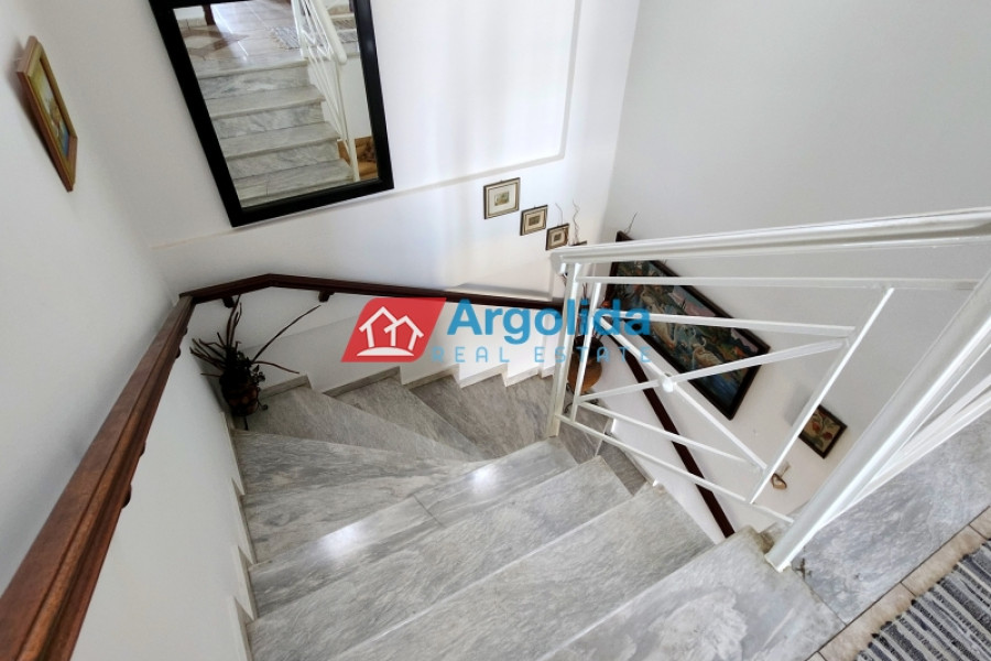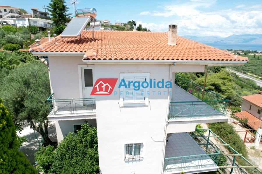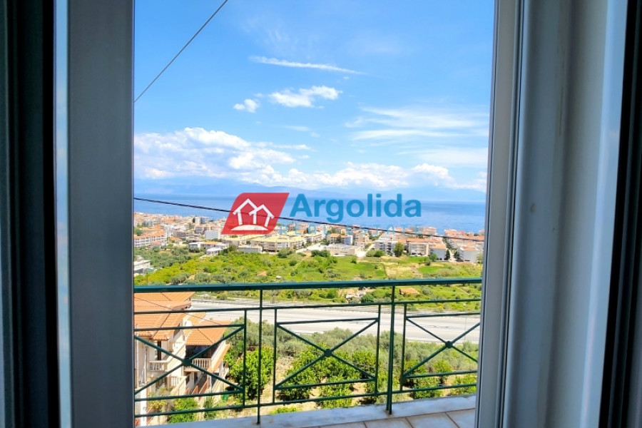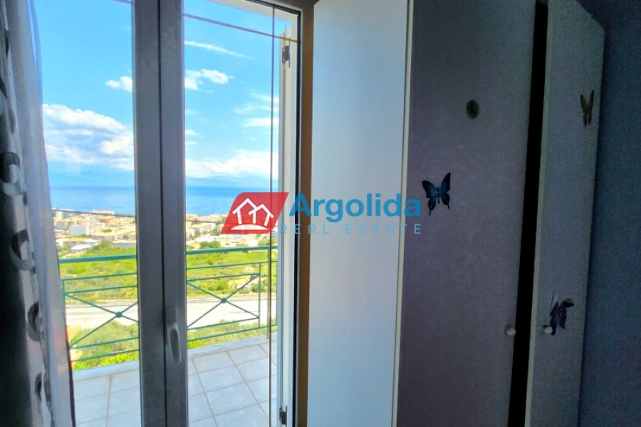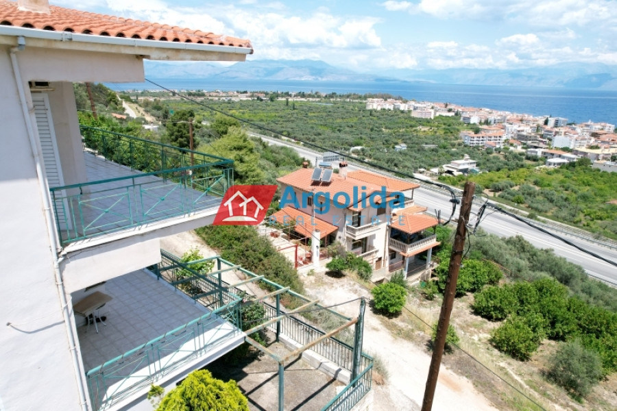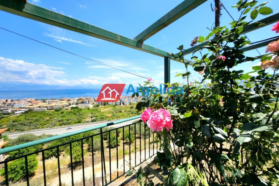 For sale is a fully equipped two-level maisonette with internal staircase, oil heating, a fireplace in the living room, air conditioning, and solar water heater, featuring a basement storage area with radiator installation and pre-installed connections for a bathroom, as well as outdoor parking spaces. The ground floor includes two entrances, an open-plan living area with fireplace, kitchen, and storage under the stairs with one bathroom, while the upper floor offers three bedrooms with built-in wardrobes and large balconies with uninterrupted sea views of the Corinthian Gulf. The exterior space features two covered areas and a paved terrace with metal structure offering stunning sea views, and the property is ideally located just 5 minutes by car from the beach and the central market of Akrata.