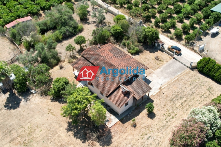 Property Code: 602231 - House FOR SALE in Midea Dendra for €195.000 . This 120 sq. m. House is on the Ground floor and features 3 Bedrooms, an open-plan kitchen/living room, bathroom . The property also boasts Heating system: Individual - Petrol, tiled floor, view of the Mountain, Window frames: Aluminium, parking space, a storage unit , garden, fireplace, air condition, appliances, awning, insect screen, double glazed windows, solar-powered water heating, BBQ, οpen space. The building was constructed in 1990 . Building Energy Rating: E Distance from sea 9000 meters, Distance from the city center: 7000 meters, Distance from nearest airport: 160000 meters, This charming three-bedroom country cottage is found in Dendra, a small settlement looking out over the archaeological site of Midea. The home has an open plan lounge-dining-kitchen area which opens on to the wide veranda overlooking the garden and the country views. Each of the three bedrooms opens on to a veranda and there is a family bathroom. The home also has a separate guest studio/apartment in the rear as well as a large shaded area which houses the barbeque area. The back garden has numerous citrus trees. This tranquil area is central to a number of important archaeological sites, Midea, Dendra and Mycenae, and is also just a 15 minute drive from Nafplio town.