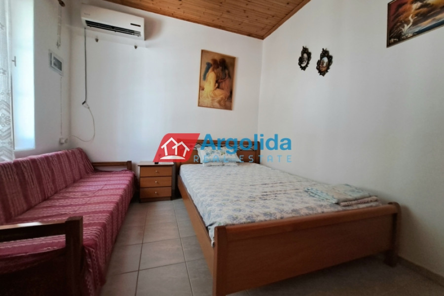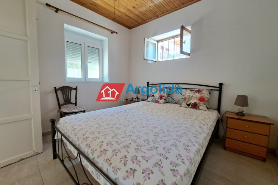 In the heart of Derveni, in a prime location just 70 metres from the sea and local shops, a traditional stone-built detached house dating back to 1955 is offered for sale, with a total internal area of 69 sq.m. set on a 275 sq.m. plot. The single-level residence comprises a kitchen with fireplace, a living room, two bedrooms, and an external bathroom, preserving the authentic character of the property. The fully fenced outdoor area is ideal for pets and features paved spaces and a small garden, offering comfort, privacy and outdoor living. Situated in a quiet residential area with easy access and within walking distance to the beach, the property is also just 4 km from the suburban railway station, providing direct access to Athens International Airport, making it an excellent option for a holiday home, permanent residence or investment opportunity in the Corinthian Gulf area.