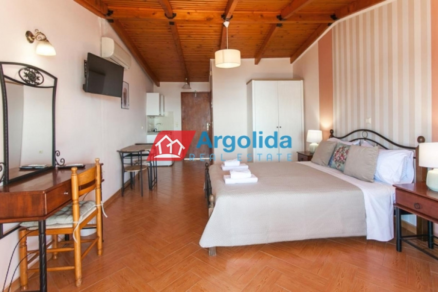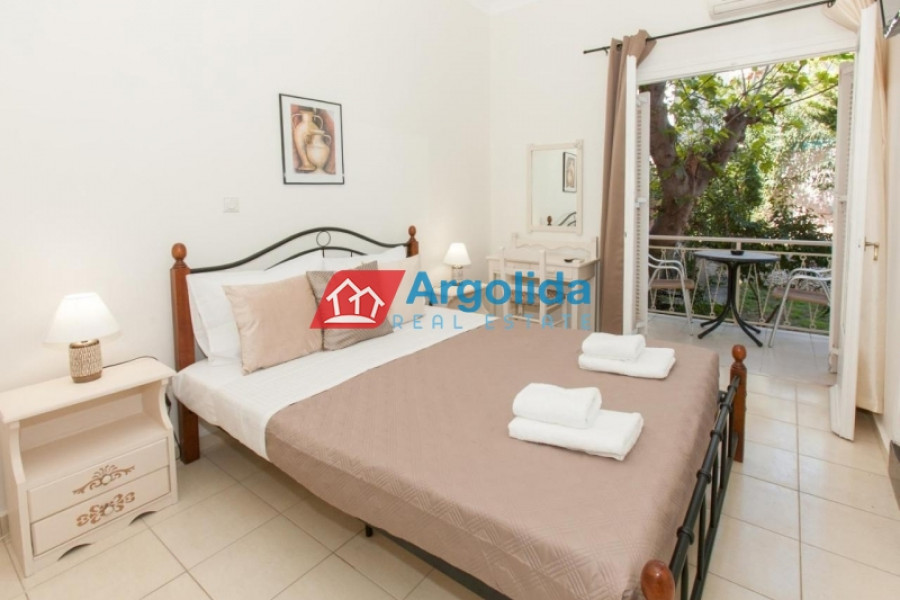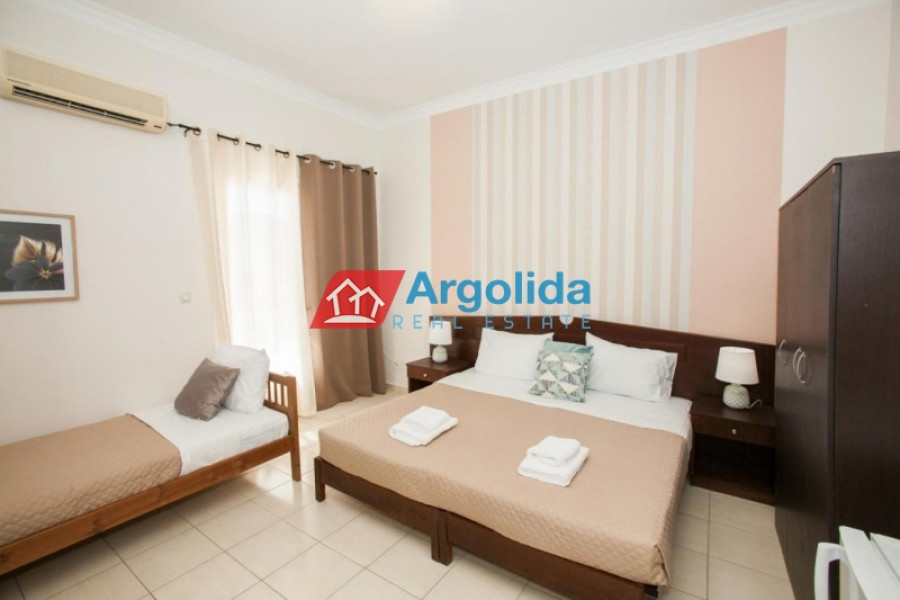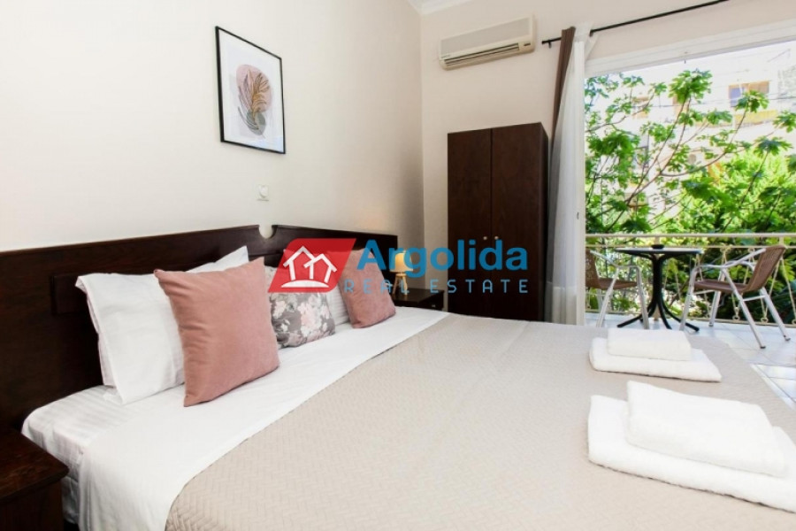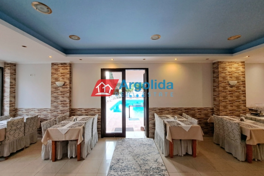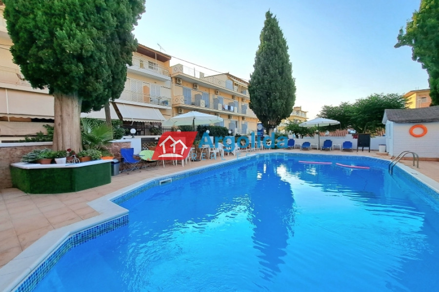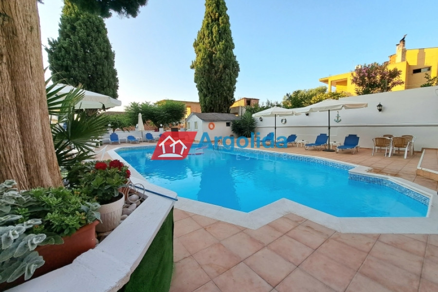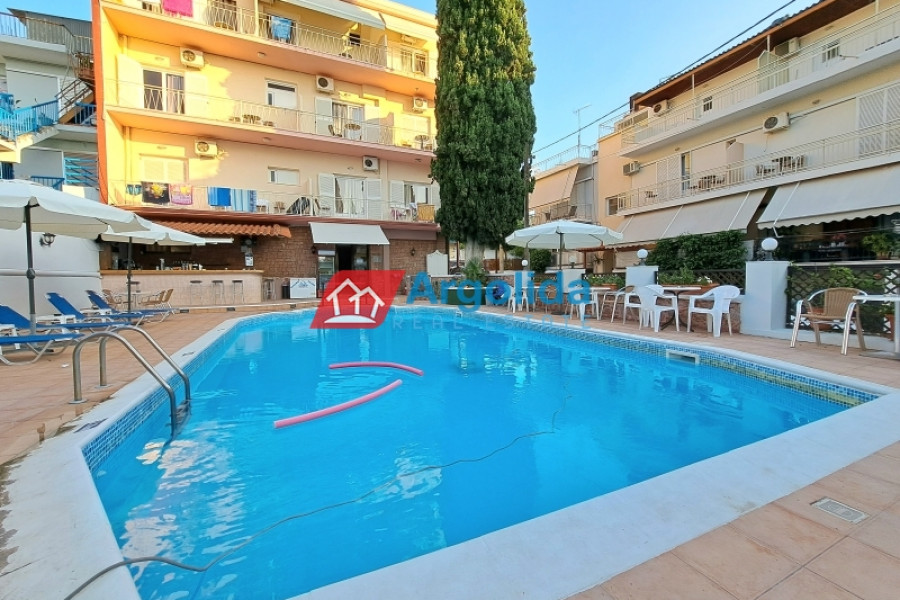 Property Code: 652315 - Hotel FOR SALE in Asini Tolo for € 1.200.000 . This 460 sq. m. furnished Hotel is on the Ground floor and features 18 Spaces, Livingroom, Kitchen, 17 bathrooms and 2 WC. The property also boasts Heating system: Individual - Petrol, marble and tile floor, view of the Sea, Window frames: Wooden, elevator, parking, a storage unit 30 sq.m. sqm, garden, swimming pool, A/C, alarm system, electrical appliances, equipment, awnings, solar-powered water heater, open space, internal staircase, ceiling, structured wiring, facade length: 40 meters, balconies: 90 sqm. The building was constructed in 1969 and renovated in 2020 Plot area: 555 s.q. . Building Energy Rating: E Distance from sea 90 meters, Distance from the city center: 6500 meters, Distance from nearest airport: 170000 meters, In the heart of Tolo, just 90 meters from the organized beach, a 37-bed hotel with swimming pool, garden and parking (with rent) is for sale. The building has three (3) floors and consists of the ground floor with a dining area/kitchen, customer reception and one bathroom, and on the upper two levels we find the rooms. The business has two (2) single rooms, ten (10) double rooms and five (5) triple rooms, all with their own balcony, fitted wardrobes, TV and Air Conditioning. In front of the building is a large swimming pool with pool-bar and sunbeds. A feature of the property is its excellent location, as it is located in the center of Tolo next to the market and shops. The business is leased until 2028.