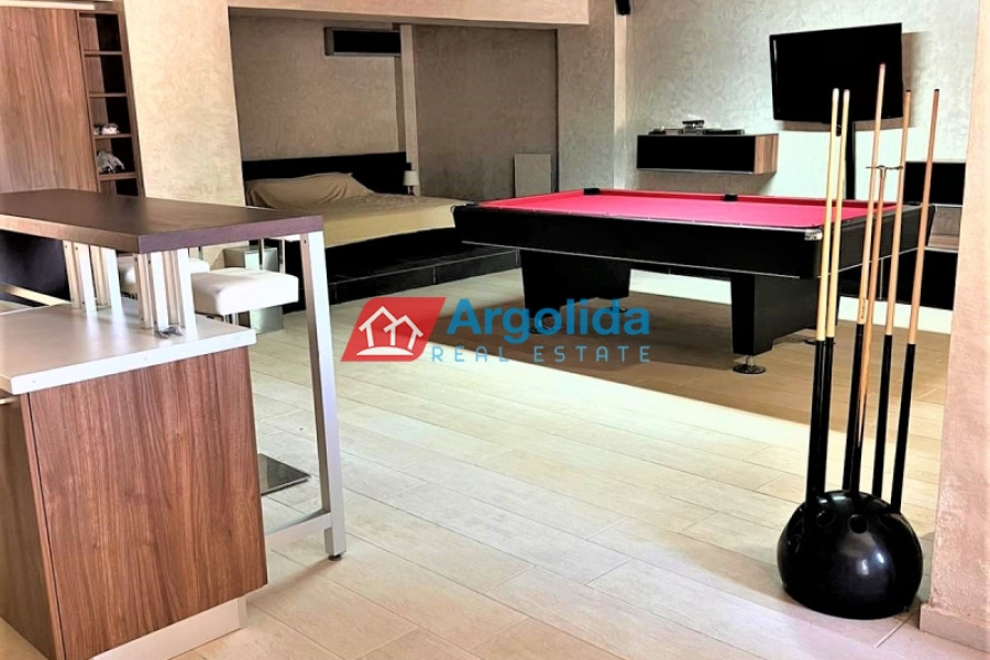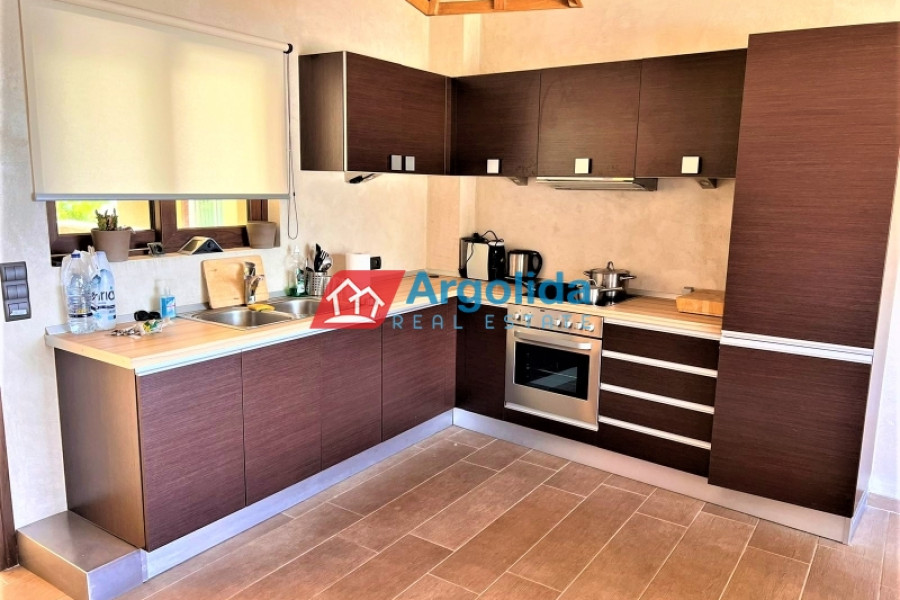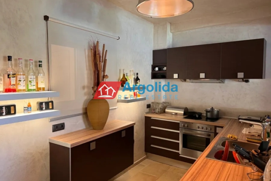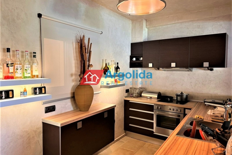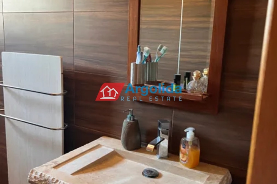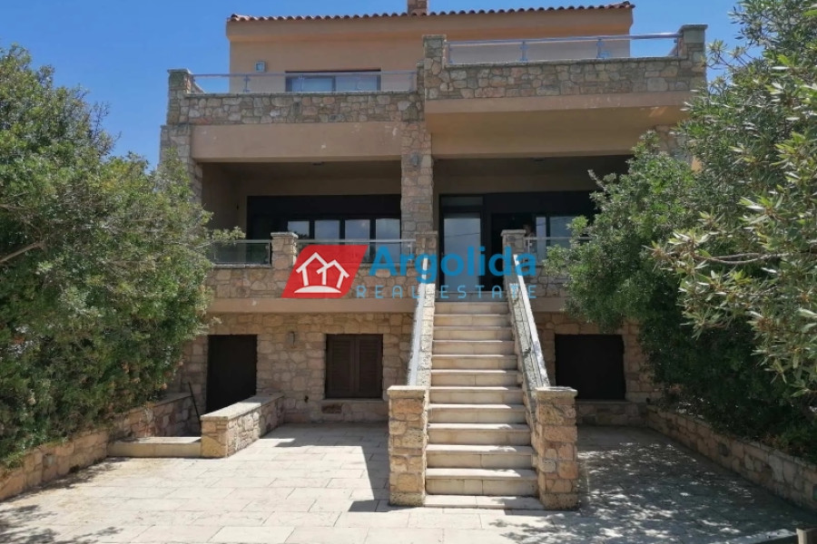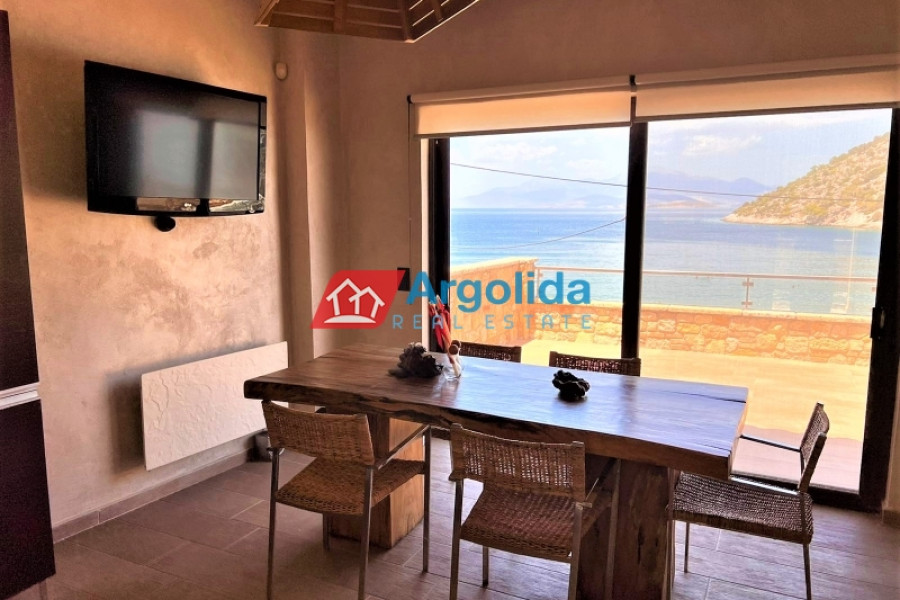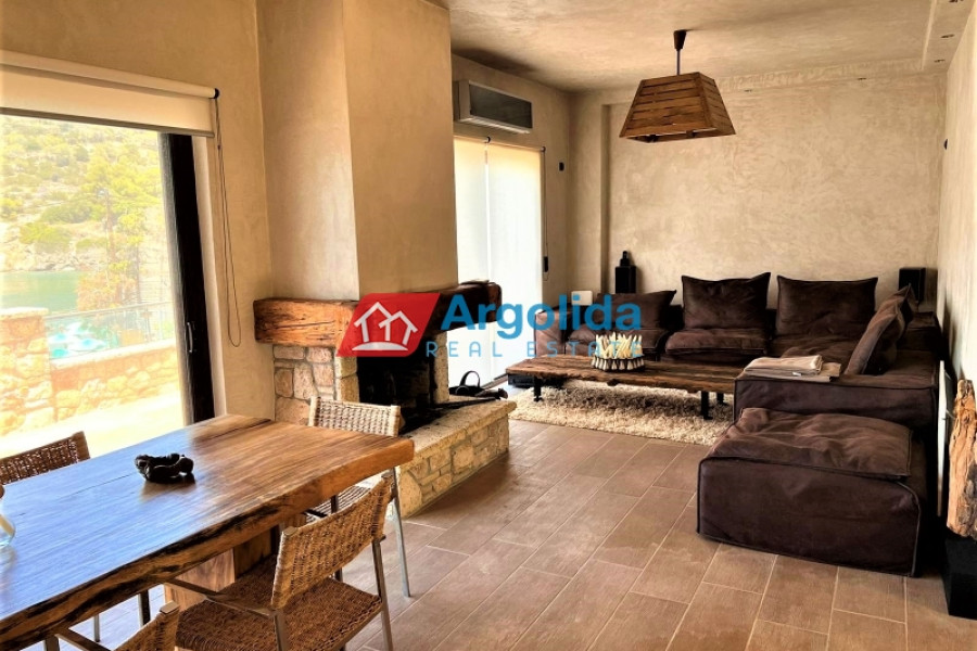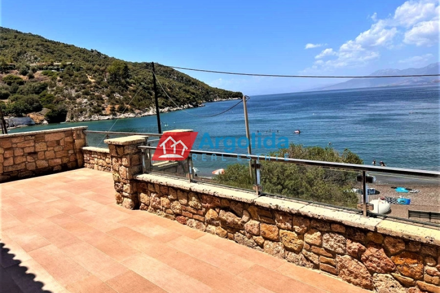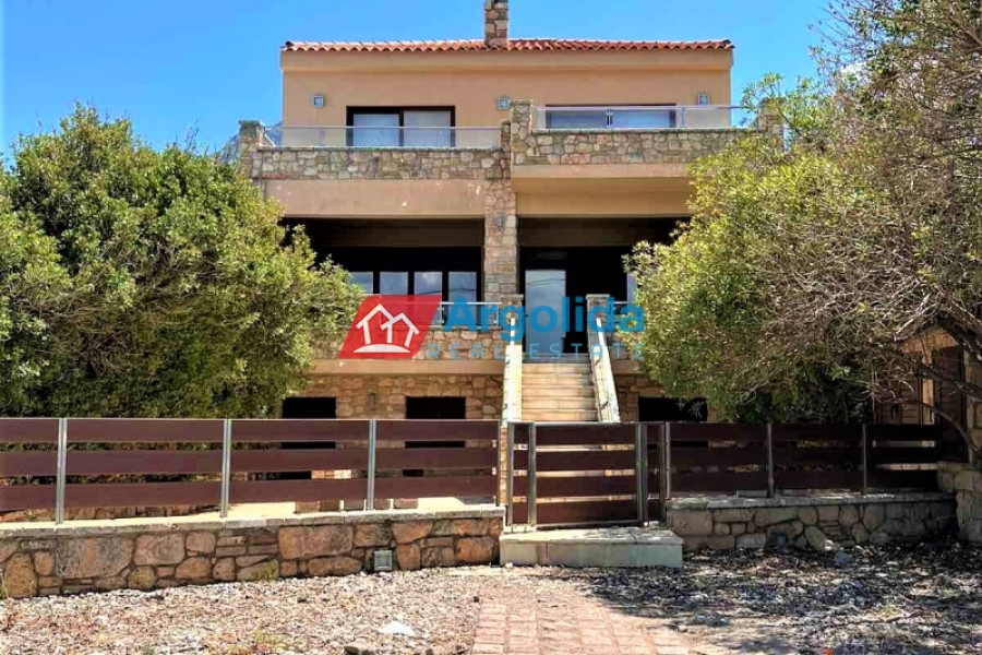 In a truly unique and tranquil seaside location in Loutraki, within the picturesque coastal settlement of Agia Sotira, this luxury stone-built villa is offered for sale, set right next to the sea with unobstructed views and direct access to the water. The property combines absolute serenity with a sense of privacy, creating an exceptional coastal retreat. It is arranged over three levels and comprises three fully independent and functional apartments, offering multiple possibilities for private living or premium tourist use. The 500 m² plot is beautifully landscaped with a well-maintained garden, subtle planting and relaxing outdoor areas. The villa features advanced technical specifications, including a photovoltaic system for energy autonomy, private water well with automatic irrigation, biological wastewater system and full internet infrastructure—ensuring comfort, efficiency and a low energy footprint. This is a rare investment opportunity of high geographical and aesthetic value, ideal both as a permanent residence and as a high-end holiday or rental property in a peaceful seaside setting.
