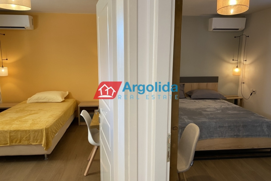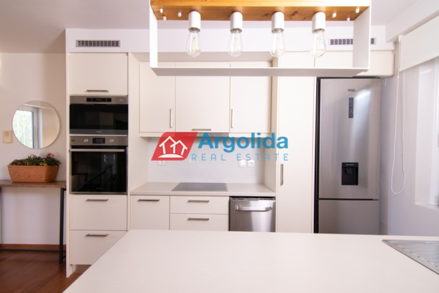 Property Code: 602058 - Apartment FOR SALE in Asini Kallithea for € 269.000 . This 109 sq. m. furnished Apartment is on the Ground floor and features 2 Bedrooms, an open-plan kitchen/living room, bathroom and a WC. The property also boasts Heating system: Individual - Electric, wooden floor, view of the Mountain, Window frames: Aluminium, Security door, parking, A/C, alarm system, electrical appliances, insect screens, double-glazed windows, solar-powered water heater, entry stairs, open space. The building was constructed in 2001 and renovated in 2022 . Building Energy Rating: E Distance from sea 600 meters, Distance from the city center: 8000 meters, Distance from nearest village: 200 meters, Distance from nearest airport: 165000 meters, Very close to the sea and just a short stroll from the beach of Plaka Drepanou, is for sale, a two-level apartment with a total area of 109m². The entrance is on the elevated ground floor and has an open-plan living room and kitchen, one (1) WC and a large terrace with views across the citrus groves. The semi-basement consists of a small kitchenette with a sitting area, two (2) bedrooms with built-in wardrobes, a laundry room and one (1) large bathroom. It has an alarm system with cameras, air conditioning and heating with electric radiators in every room and new aluminum frames withdouble glazing and insect screens. It is worth mentioning that the apartment was beautifully renovated in 2022 and is fully furnished and equipped with new electrical appliances, while its distance from the sea is approximately 650 meters. It is sold as shown in the photos and is suitable for a permanent or even a holiday home