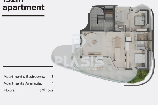 Apartment For sale, floor: 3rd, in Glyfada - Glyfada - center. The Apartment is 132 sq.m.. It consists of: 3 bedrooms (1 Master), 2 bathrooms, 1 wc, 1 kitchens, 1 living rooms and it also has 1 parkings (1 Underground). The property was built in 2026. Its heating is Autonomous with Natural gas, Underfloor heating, Air conditioning, Solar water system, Ventilation system, Sound insulation, Thermal insulation, Thermal facade are also available, it has Aluminum, Thermal brake frames with Double glazed - Energy Efficient windows, the energy certificate is: A+ and its floors are Tiles, Wooden. The property's status is: New development, Excellent condition, it is close to Transportation, Park, School, Local market, 15 Km from city, 1 Km from sea, 30 Km from airport, it has Good view. The Apartment is Whole floor, With Facade, Bright, Airy, Sunny, Ramp / Wheelchair access, Upper level house, Luxury, Modern, Minimal design, it is suitable for Investment, Revenue source, Co-housing and it also has the following unique features and advantages: Elevator, Storage, Garden, Security door, CCTV, Security alarm, Fire extinguishers, Internet, Satellite Receiver, Night stream, Three phase current, Automatic watering, Grass, Trees, Pets allowed, Quiet neighborhood, Energy autonomous, Solar panels, Fiber line, Porch, Smart home, Car charger, Drains. Price: €1,500,000. Plasis Real Estate Glyfada, contact phone: 2109601909, email: