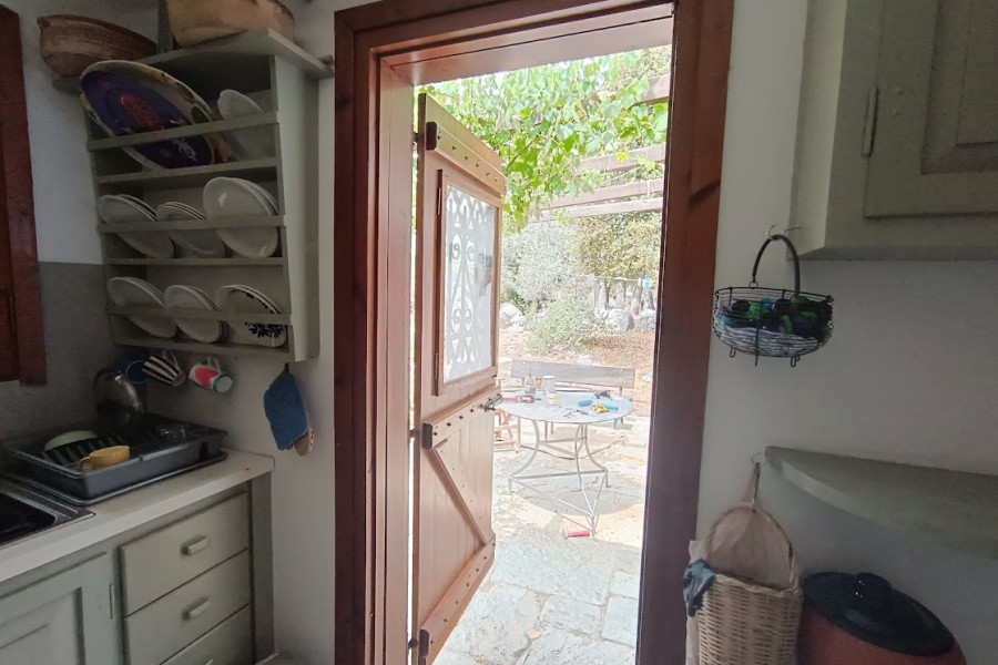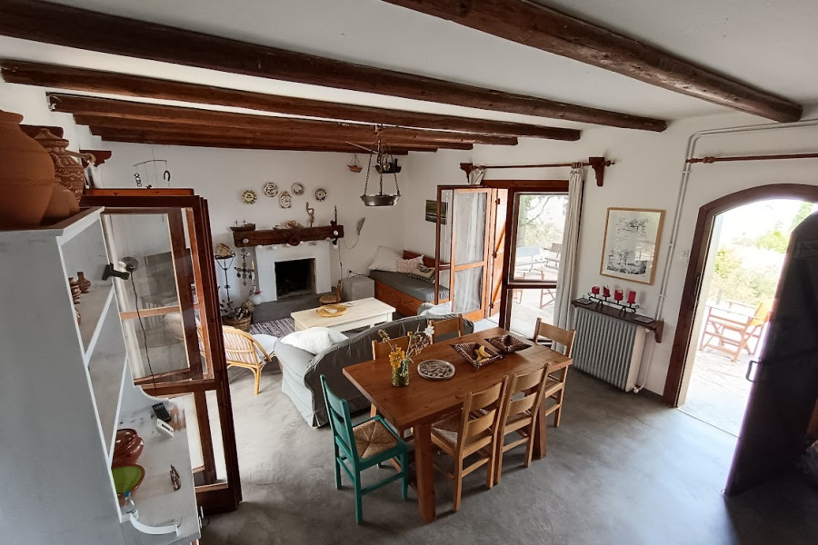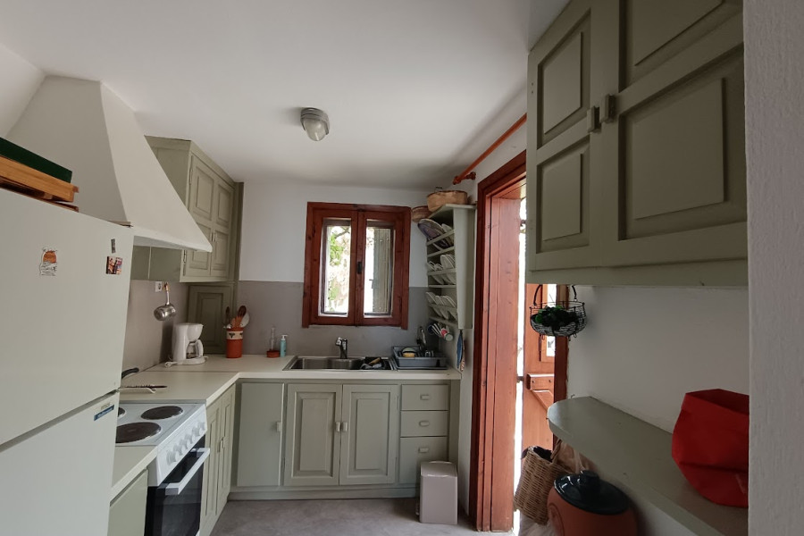 Seaside house 96sqm, 50 meters from the sea, for sale in a plot of 5000sqm , with great view. The house has two bedrooms, two bathrooms, a kitchen and a spacious living room. It has wide view of the Pelion on one side and the village on the other, as it is built on the top of the hill. It is very close to the airport of Nea Aghialos and the main road.