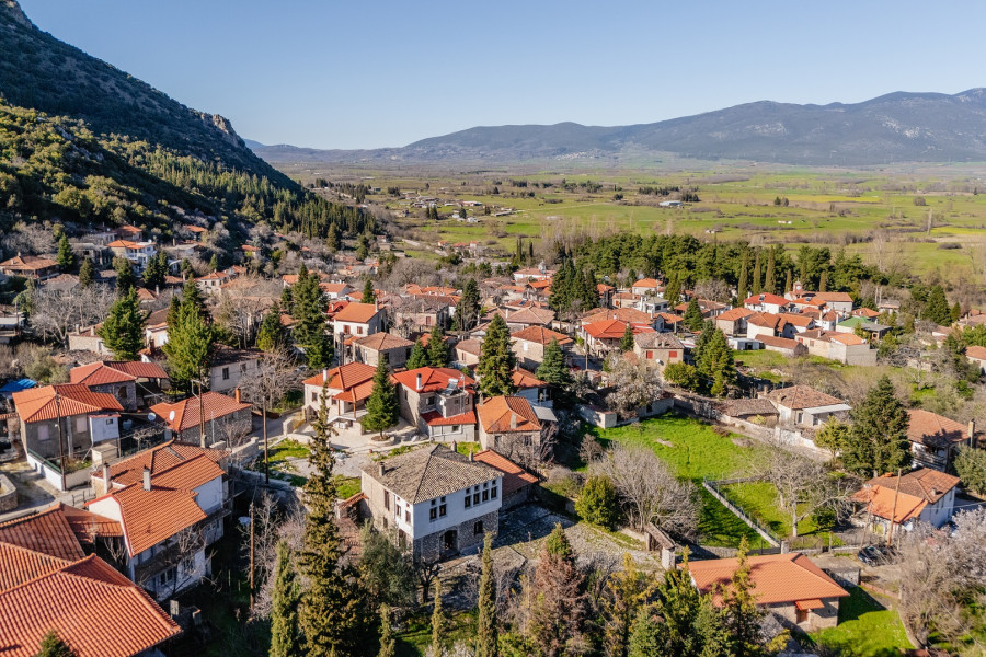 A stunning house with a rare large plot in the traditional village of Lilaia in Parnassos.