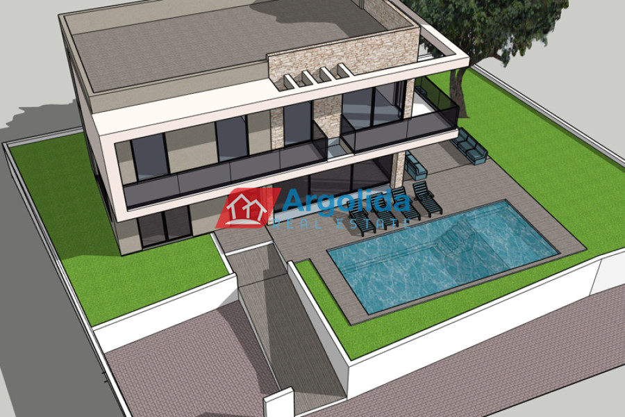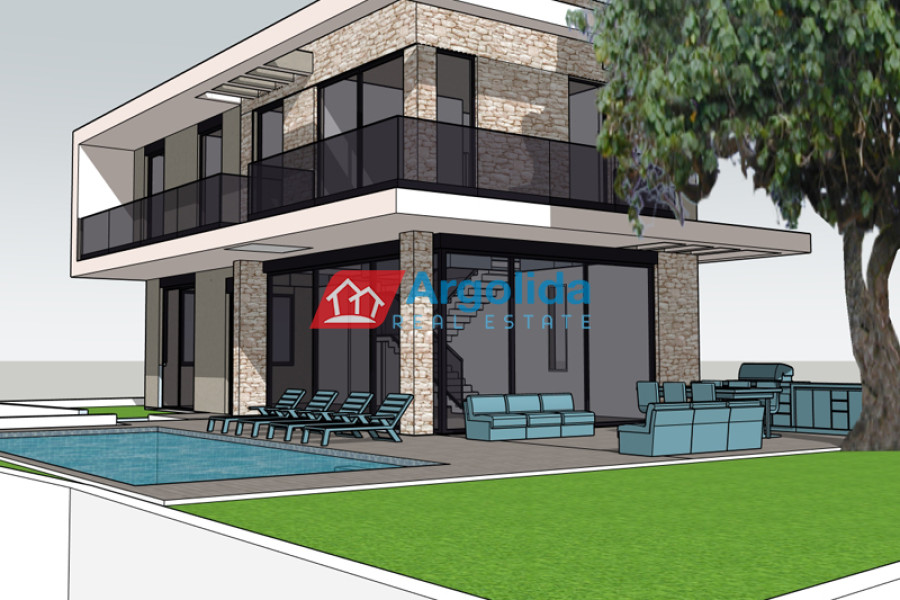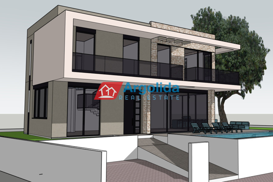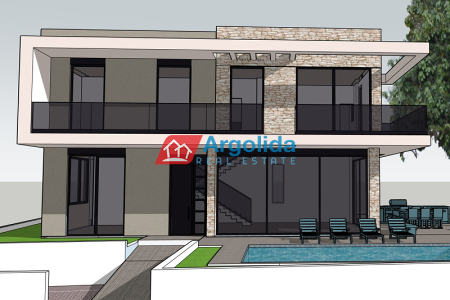 In one of the most beautiful and peaceful areas of Argolida, in the seaside settlement of Myloi Lerna, a newly built detached house of 186 sq.m. is available for sale, set on a 500 sq.m. plot and located just 50 meters from the sea, with a selling price of €500,000. This property combines modern architecture, functional layout, and high–quality construction, making it ideal for permanent residence or tourist investment. The house is developed on two levels of 93 sq.m. each, connected by an internal staircase, offering bright and comfortable living spaces. The ground floor features a spacious open–plan living–dining–kitchen area with large terraces and one bathroom, while the upper level includes four bedrooms (one master), a second bathroom, and a separate laundry room, fully meeting the needs of a family. The outdoor area is highly functional, with private parking, landscaped garden, activity space, and a large swimming pool that enhances the sense of relaxation and luxury. The construction, expected to be completed in May 2027, follows modern technical specifications with emphasis on energy efficiency, including high–grade insulation, energy–efficient frames, a heat pump, solar water heater and premium mechanical installations, ensuring year–round comfort. The location offers excellent access to nearby attractions such as Nafplio, Asini, and the coastal route leading to Paralio Astros, as well as easy access to beaches, shops and restaurants. A high–standard property in a privileged seaside setting, perfect for those seeking quality living by the sea.