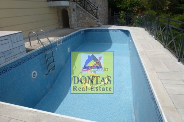 Detached house For rent in Kifisia - Politeia. The Detached house is 335 sq.m. and it is located on a plot of 500 sq.m.. It consists of: 4 bedrooms (1 Master), 3 bathrooms, 1 wc and it also has 2 parkings (2 Open). The property was built in 2008. Its heating is Autonomous with Oil, it has Aluminum frames with Double glazed windows, the energy certificate is: C and its floors are Wooden, Marble. The property's status is: New development, Excellent condition, it has Panoramic view. The Detached house is Painted, With Facade, Airy, Luxury, Neoclassical, Storage, Internal staircase, Swimming pool, Garden, Security door, Security alarm, BBQ, Pets allowed. Price: €4,500. Dontas Real Estate, contact phone: 2106231555, Mob: 6980502020, email: