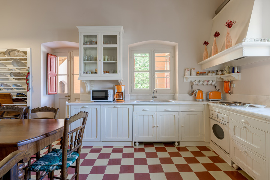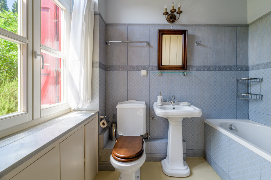 On the ground floor of the property, there is an independent guesthouse, consisting of an open-plan space, which includes a bedroom, kitchenette, bathroom, and a very picturesque courtyard that leads to the carefully maintained outdoor area.