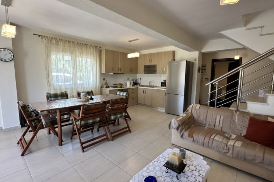 Property Code: HPS5393 - Maisonette FOR SALE in Sithonia Vourvourou for € 450.000 . This 160.00 sq. m. furnished Maisonette consists of 3 levels and features 3 Bedrooms, an open-plan kitchen/living room, 3 bathrooms . The property also boasts Heating system: Autonomous heating - Oil, tiled floor, unobstructed view, Window frames: Aluminium, Armourplated door, parking, a storage unit sqm, garden, fireplace, A/C, electrical appliances, insect screens, double-glazed windows, BBQ, attic, open space, internal staircase, balconies: 28 sqm. The building was constructed in 2009 Plot area: 1000 s.q. . Building Energy Rating: B Distance from sea 150 meters, Distance from the city center: 115000 meters, Distance from nearest village: 700 meters, Distance from nearest airport: 100000 meters, A renovated maisonette with a total area of 160 sq.m., there are 2 maisonettes on the plot, each has the right for half of the plot. The ground floor has an apartment with one bedroom, living room, kitchen and 1 bathroom. The first floor has a bathroom and living room with kitchen. The second floor has 2 bedrooms, bathroom and attic. There is a storage room in the yard plus a summer kitchen. Sithonia is the pearl of the Halkidiki peninsula, it gained its fame thanks to its untouched beautiful nature, amazing turquoise sea and adorable wild beaches surrounded by pine forests. The combination of the sea breeze with the smell of pine trees makes the peninsula an unforgettable place to relax. The stunning natural beauty of the beaches with golden sand attracts many tourists here, but precisely for the sake of preserving this beauty, mass construction is not allowed here, all the villages are small and cozy, there aren't many hotels where you can stay, and all the property offered for sale is unique and great investment.All the beaches on the east coast with stunning views of Mount Athos differ from each other and amaze with their pure pristine nature. Located in small coves between the villages of Vourvourou and Sarti, many small beaches hidden behind a dense pine forest allow you to endlessly discover new hidden beauties every time. The western coast of the Sithonia Peninsula has a more developed infrastructure, with large villages and organized beaches, hotel complexes and yacht clubs. It's a great place to spend time at a tavern on the beach enjoing the sunset.