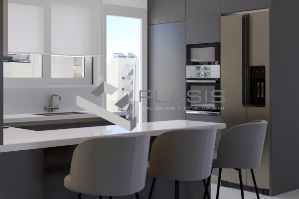 Apartment For sale, floor: 3rd, in Nea Smyrni - Center. The Apartment is 96 sq.m.. It consists of: 2 bedrooms, 2 bathrooms, 1 kitchens, 1 living rooms and it also has 1 parkings (1 Open). The property was built in 2024. Its heating is Personal with Natural gas, it has Aluminum frames with Double glazed windows, the energy certificate is: B+ and its floors are Tiles. The property's status is: New development, Excellent condition, it is close to Tram, School, Square, it has Unobstructed view. The Apartment is Whole floor, With Facade, Bright, Airy and it also has the following unique features and advantages: Window Screens, Tents, Elevator, Storage, Garden, Security door, CCTV. Price: €360,000. Plasis Real Estate Glyfada, contact phone: 2109601909, email: