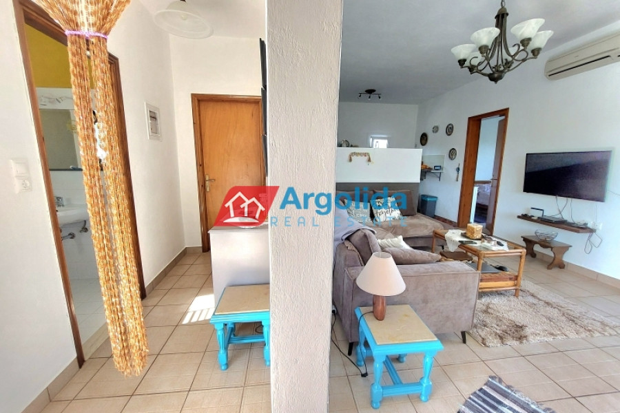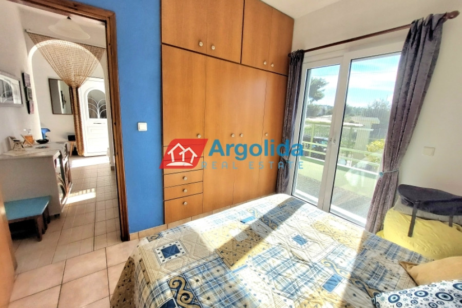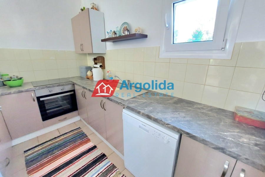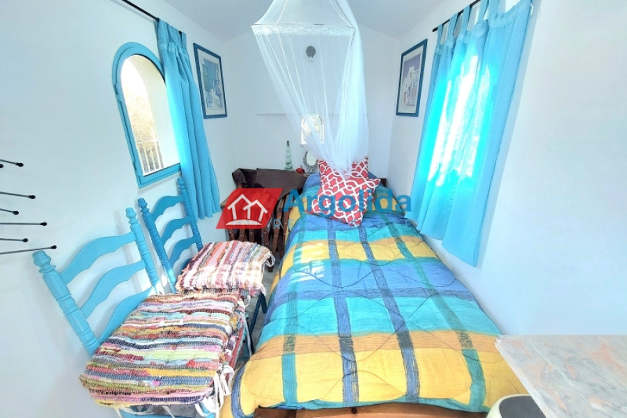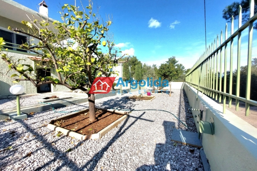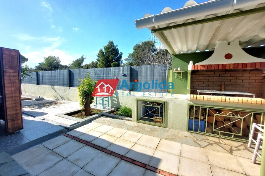 Very close to Porto Heli, in a quiet and green area mainly consisting of holiday homes, a recently renovated (2024) ground-floor detached house of 77 sq.m. is available for sale, ideal for both a holiday retreat and permanent living. The house is slightly elevated and features storage areas underneath as well as a large 13 cubic meter water tank, offering practicality and autonomy. The plot is fully fenced, with paved areas around the house, a spacious garden with ornamental trees and a dedicated barbecue area, creating an ideal outdoor living environment. The property is equipped with a solar water heater, a fireplace and air conditioning in all rooms, ensuring comfort throughout the year. It consists of two comfortable bedrooms and an additional smaller room that can be used as a guest room or a home office. The house is in excellent condition and is located only 1,500 meters from the beautiful beaches of the area, 2.5 km from the cosmopolitan Porto Heli, 16 km from the new professional-standard golf course currently under construction and approximately 200 km from Athens International Airport. In addition, it offers easy access to the beautiful islands of Spetses and Hydra, making it a great investment opportunity and a truly attractive property in one of the most desirable locations of the Argolida region.