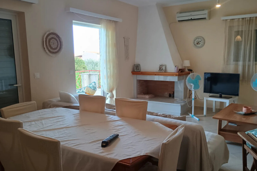 Ground Floor – 85 sq.m.Spacious living room with fireplaceFully equipped kitchen2 bedrooms1 bathroom & 1 WCDirect access to garden and verandaFirst Floor – 80 sq.m.Bright living roomFully equipped kitchen2 bedrooms1 bathroom & 1 WCLarge balconies with open green viewsFeaturesAutonomous oil heating, air conditioning, solar water heater, aluminum frames with double glazing, tiled floors, security door, screens, storage room, parking space, fully furnished with appliances, Energy Class E, northeast orientation.