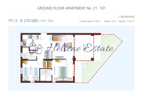 Platanias, Pirgos Psilonerou, Apartment For Sale, 70 sq.m., Property Status: Very Good, Floor: Ground floor, 2 Bedrooms 1 Kitchen(s), 3 Bathroom(s), Heating: Personal - Electricity, View: Sea view, Building Year: 2025, Energy Certificate: B, Out of doors space: 12 (Legalized Covered Areas) τ.μ., 1 parking(s), Features: Security door, Cable TV, Internet Line, Double Glazed Windows, Balconies, Pets Allowed, For Investment, Luxury, Mansion, Airy, Roadside, Not Roadside, Bright, AirConditioning, Boiler, Stadium, Grass, Automatic Watering, Trees, Swimming pool, Back yard (Garden), New Construction, Painted, Holiday Home, Suitable for Commercial Use, Distance from: Airport (m): 30000, Seaside (m): 50, City (m): 15000, Village (m): 300, Price: 270.000€.