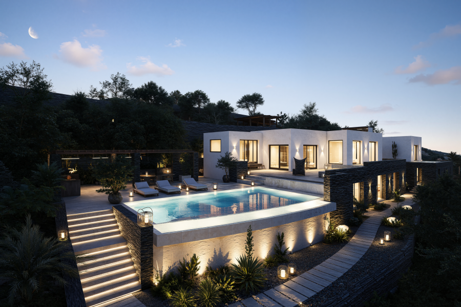 A high-end property with breathtaking views of the Aegean Sea and the sunset, located in Glaronisi, Kea.