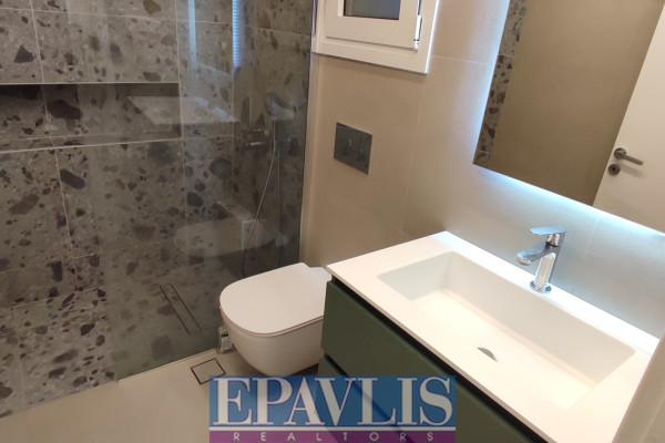 Excellent apartment (75 Sq.M) For Rent with modern aesthetics and unique brightness, in the area (Agios Dimitrios) on the 3rd floor of a family apartment building. The apartment is developed in functional areas including 2 spacious bedrooms (1 Master), 1 modern bathroom, 1 kitchen equipped with modern electrical appliances (built-in oven and ceramic hobs, dishwasher, clothes washer and refrigerator), 1 elegant living room and a large veranda in front. It was built in 2003 and renovated in 2025 with a modern architectural approach and high quality materials. The heating of the property is autonomous with natural gas, while air conditioning is also available (there are installed 3 air-conditioners of the latest technology and A+ class). It is also equipped with a security door, Solar, Boiler, Sound insulation, Thermal insulation, Thermal facade, it has Aluminum frames, with Thermally Switchable Double glazing, and the special feature that sets it apart, the glass element on the roof that offers an unobstructed view of the sky and enhances the natural brightness of the space. The floors are Tiles. It is located close to Transportation, Park, Schools, Church, Kindergarten, People's market, Super Market, and Agora. Indicatively, you find 350 Meters from City Bus Stop, 250 Meters from Ag. Dimitriou Avenue, 2.5 Kilometers from the beach (Kalamaki Beach), 100 Meters from PRIMARY SCHOOL, 110 Meters from KINDERGARTEN, 200 Meters from CHILDREN'S STATION, 450 meters from HIGH SCHOOL, 150 meters from the market, restaurants, etc. The property is located in a very quiet neighborhood of the area and in a very privileged position. It is suitable for short-term rental. Price: €850. EPAVLIS REAL ESTATE AGENTS, Contact Phone: 2109945719, email: