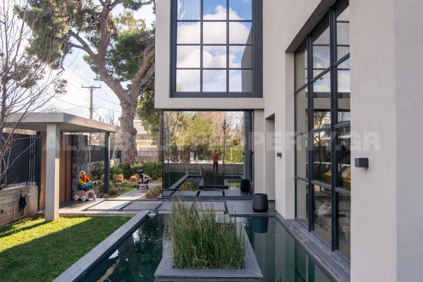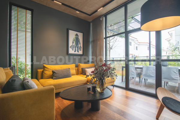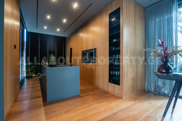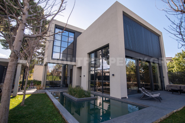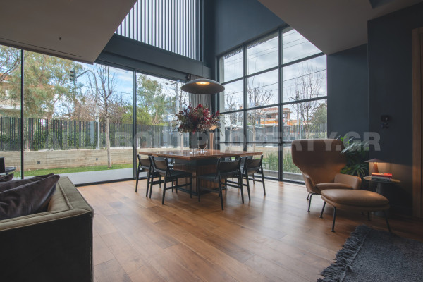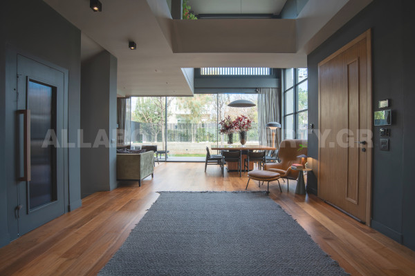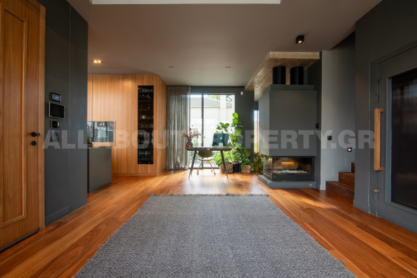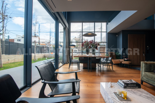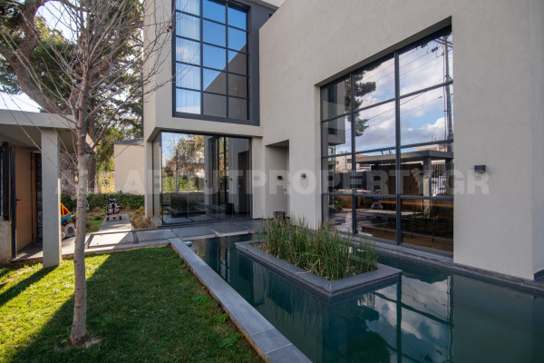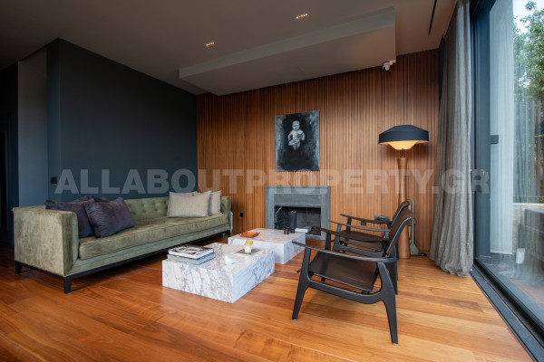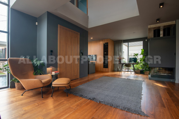 This ultra-luxurious residence, built in 2021, combines minimal design, premium materials and absolute functionality. With a total area of 367 sq.m. on a plot of 465 sq.m., the ground floor impresses with its double-height living room and large glass surfaces that fill the space with natural light. The two fireplaces in the two living rooms create an atmospheric feeling of warmth, while the open kitchen and dining area complete the perfectly functional design. A stylish WC serves the level. On the first floor, three spacious bedrooms, each with its own bathroom and ample storage closets as well as a dressing room, ensure privacy and comfort. On the lower level, there are two more bedrooms, a bathroom and a sauna, offering a secluded relaxation area. The residence has natural gas underfloor heating, VRV central air conditioning, 10cm thermal insulation, alarm, basement parking, lifts to all levels and a carefully landscaped outdoor area with swimming pool, creating a true haven of luxury.