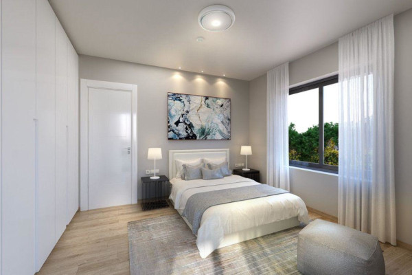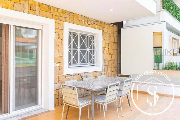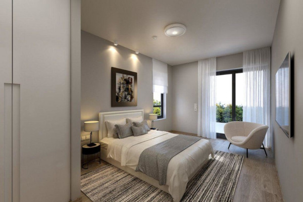 The apartment is 128sqm on the 1st floor. It offers a comfortable living room with a fireplace, a modern kitchen, 3 bedrooms and 2 bathrooms. It has a spacious balcony overlooking the green surroundings of the area, a storage room and parking. Other amenities include thermal insulation, autonomous underfloor heating with natural gas, energy efficient windows, solar panels, security door, pre-installation for alarm system, modern kitchen furniture, pre-installation for air-conditioning units, electric car charging etc.