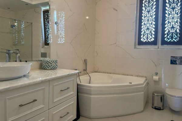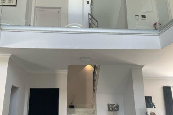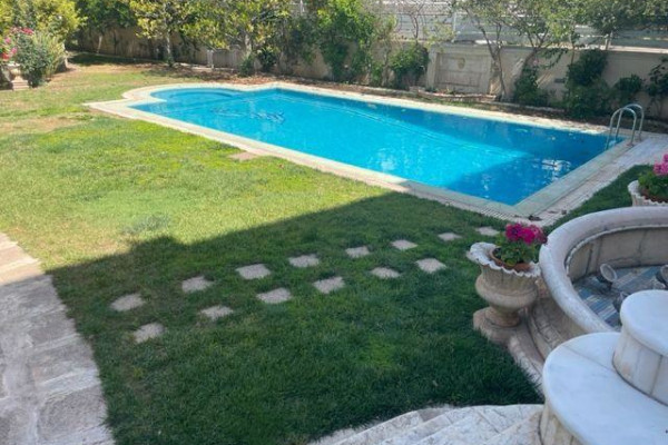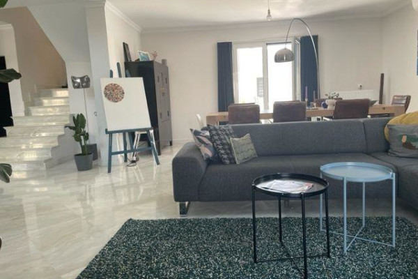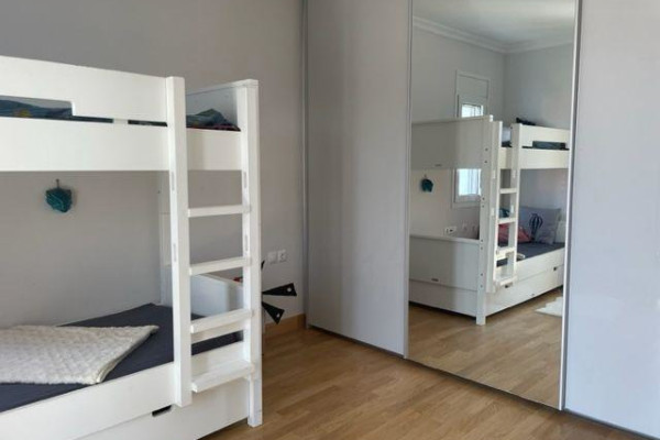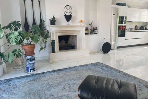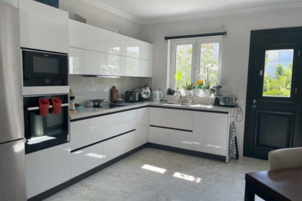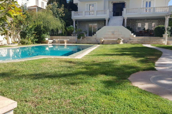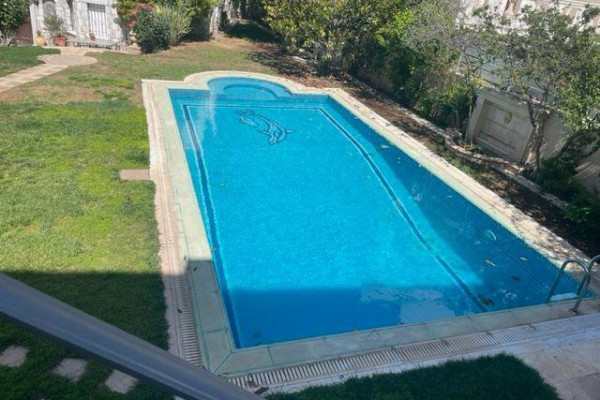 The apartment is 330 square meters and consists of 3 levels (1st, 2nd and attic) with an internal private elevator. The first floor is 100 square meters and offers a comfortable entrance hall, a large living room with a fireplace and marble floors, as well as an exit to a terrace overlooking the garden and the pool. It also has a very large kitchen, equipped with electrical appliances and a daily living room with a second fireplace. The second floor is also 100sqm and consists of 2 comfortable bedrooms with their own separate bathrooms. In the attic there are 2 more bedrooms and 2 bathrooms. The residence also has air conditioning throughout, independent oil heating, 2 underground parking spaces, storage, etc.