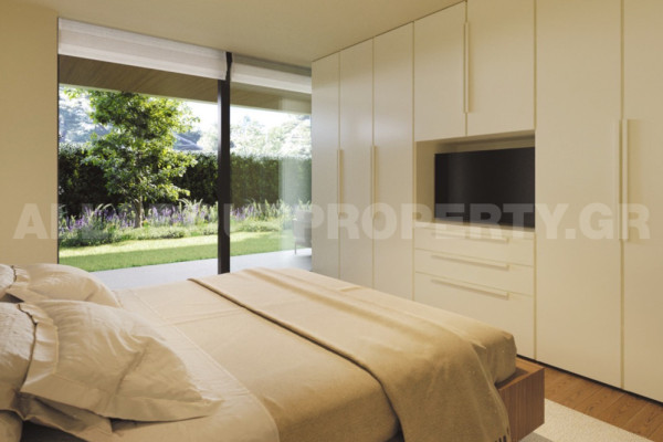The apartment is 196m2 on the ground and 1st floor and has a private garden of 500m2. It offers a spacious living area with a fire place and large openings leading to the garden, an open plan kitchen, 3 bedrooms, 3 bathrooms and 1 WC. The internal staircase leads to the upper level where there is a family room and an office area with 1 bathroom. There is also a storage room and 2 parking spaces. Amenities include underfloor heating through a high energy efficiency Heat Pump, Time-programmable digital thermostats, Air conditioning system in conjunction with the Heat Pump with internal built-in units and ventilation jets, Solar Collector, Boiler, Aluminum frames with thermal brake, Low E-windows, Thermal insulated façade, Exterior security door, Alarm System, Video door phone, Signal distribution television center, Photovoltaic system, Natural gas for cooking, Zero waste solutions. High tech features include flood sensor, energy and water consumption monitoring, remotely controlled water supply, remotely controlled irrigation, remotely controlled heating and air-conditioning, electronic door locks, electrical car/bike charging etc. All units will have access to a modern co-working space and a gym.