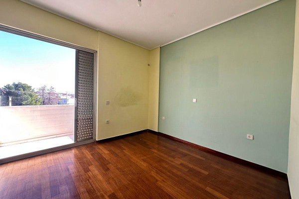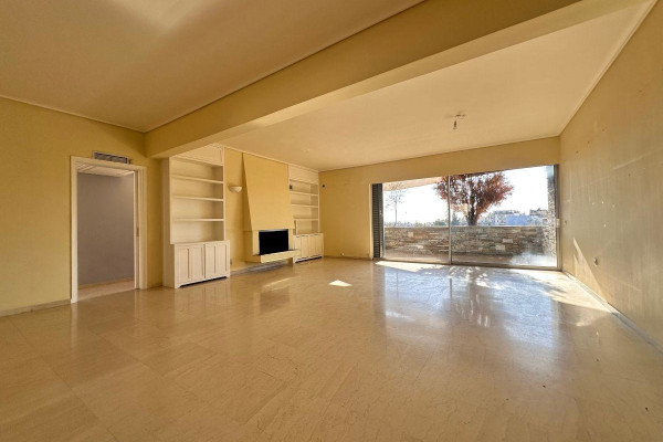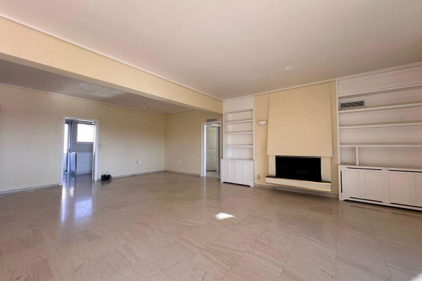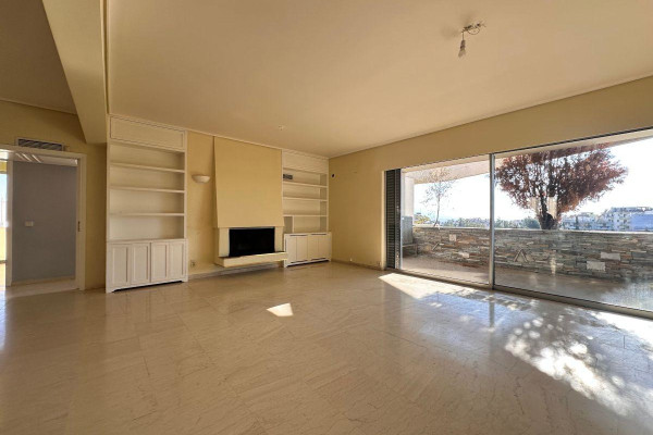 The apartment is on the 4th floor 148m2 and offers a spacious living room area with a nice fireplace and exit to a large veranda with open views. The kitchen is separate, very well designed and has a pantry/laundry room. There are 3 bedrooms- all exiting to balconies, one of which a spacious master with ensuite bathroom and one more bathroom which serves the other 2 bedrooms. Amenities include marble and wooden floors, alarm, autonomous heating with petrol, central Air-condition