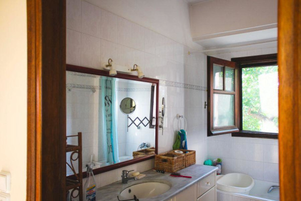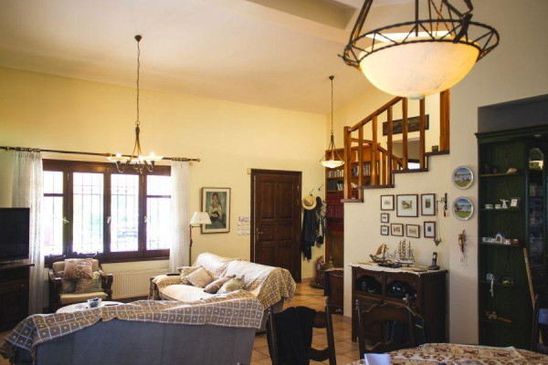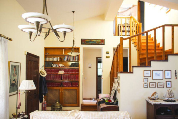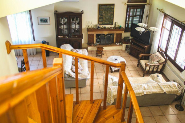 The residence is a total of 279sqm on a plot of 1760sqm consisting of 3 levels. The ground floor has a living room with a fireplace, an open kitchen, 2 bedrooms, 1 bathroom and 1 WC. On the 1st floor there is 1 more bedroom, 1 office and 1 bathroom. The basement is 127 sq m, of which 60 sq m is an apartment with 1 bedroom and bathroom and the rest are auxiliary spaces. Other amenities include independent oil heating, borehole, BBQ in the beautiful mature garden of the house and parking space on the plot.