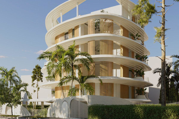 This luxury apartment is located on the 1st floor and extends to 154m2. It has a single living and dining area with an elegant, modern kitchen and 1 WC. A feature of the property are the extensive terraces that surround the living areas, offering an ideal setting for outdoor relaxation, dining and entertaining. The layout includes a spacious master bedroom with en-suite bathroom as well as two further bedrooms with two bathrooms.