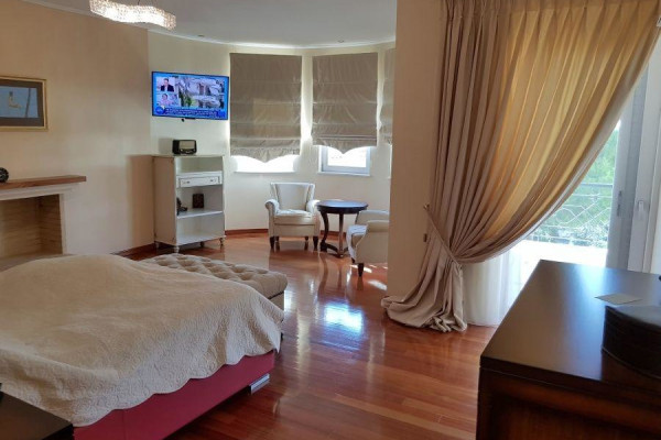 The residence is 600 square meters and consists of 3 levels. The ground floor is 240sqm and offers a bright playroom with a fireplace, a kitchen equipped with electrical appliances, 2 bedrooms (guesthouses), 1 bathroom as well as utility rooms. On this level the floor is tiled and leads to the large garden. On the raised floor, which is 200 square meters, there is the main living room with a fireplace and marble floors, a large kitchen with a living room, 1 office and 1 WC. This level leads out to a large terrace and back to a garden with BBQ. On the first floor, which is 160 square meters, it offers 4 bedrooms and 2 bathrooms and has parquet floors. The residence also has 4 parking spaces, security door, alarm, heating autonomy per levels, air conditioning, etc.
