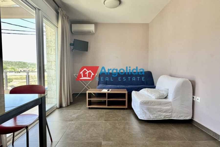 Within very close distance from the beautiful and quiet beach of Vivari, a fully furnished apartment of 33.82 sq.m. is offered for sale, located on the 1st floor of a well-maintained residential complex with an elevator, making it an ideal choice for a holiday home or investment in a highly sought-after seaside destination in Argolis. The property features a functional open-plan layout with kitchen and living area, providing direct access to a bright veranda, while the bedroom includes a built-in wardrobe and access to a second smaller veranda, ensuring natural light throughout the day. The bathroom is fully equipped and practical, and the apartment offers modern amenities such as air conditioning, solar panel for warm water, aluminum frames with double glazing, and electric shutters, ensuring comfort, insulation, and security, as well as electric awnings on the balcony. It is sold fully furnished with all electrical appliances, ready for immediate use or tourist exploitation, while its location with easy access to local infrastructure makes it ideal as a holiday home or investment property with strong rental potential. Additionally, there is the option to combine it with the adjacent apartment, offering greater flexibility and value, while a similar apartment is also available on the elevated ground floor at €105,000, with all prices being final.