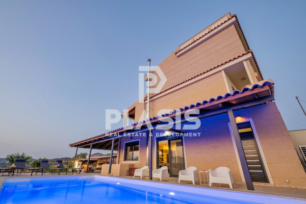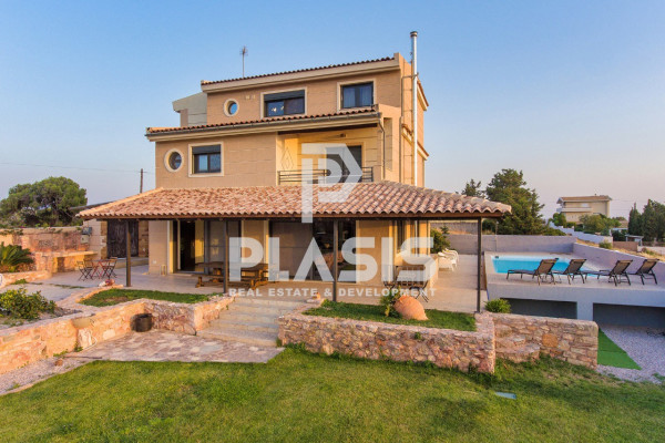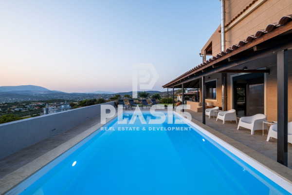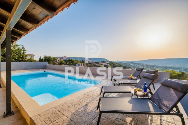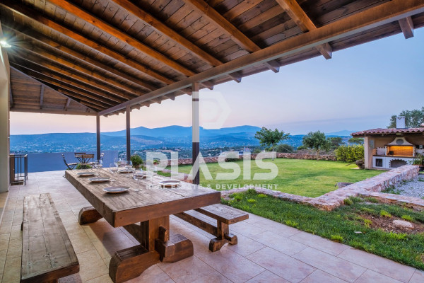 Villa For Sale, floor: Ground floor, 1st, 2nd (3 Levels), in the area: Koropi. The area of the property is 405 sq.m. and is located on a plot of 1,000 sq.m. It consists of: 5 bedrooms (1 master), 3 bathroom/s, 2 kitchen/s, 2 living room/s, while it has 5 parking spaces (5 in open space). It was built in 2014. The heating of the property is Individual with Oil, while Air Conditioning is also available, it has Aluminum frames, Thermal switches with Double - Energy glazing, energy certificate: A and the floors are: Tiles. Its condition is: Renovated, Amazing, Mountain View, Green, Openness, Panoramic, Unobstructed. The property is Furnished, Bright, Airy, Cozy, Luxurious and also has the following features and advantages: Screens, Electric. Appliances, Storage, Internal Staircase, Pool, Garden, Security Gate, BBQ, Lawn, Trees, Pets Allowed, Quiet Neighborhood. Price: €1,450,000. Plasis Real Estate Glyfada, Contact Phone: 2109601909, email: