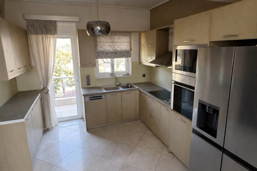 For sale maisonette of 220 sq.meters on the Euboea island . The maisonette has 2 levels. Erdgeschoss consists of 6 bedrooms, 2 shower WC. 1. Etage consists of 2 living rooms with kitchen, 2 shower WC. A magnificent view of the sea opens up from the windows. There are: solar panels for water heating, a fireplace, air conditioning, awnings, heating, a barbecue area. There is an alarm system installed. Extras included with the property: parking space, garden.