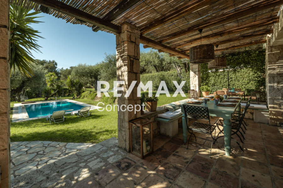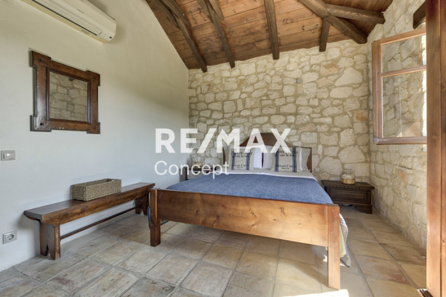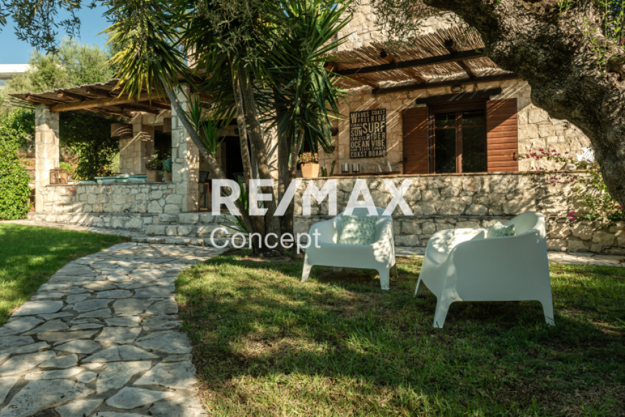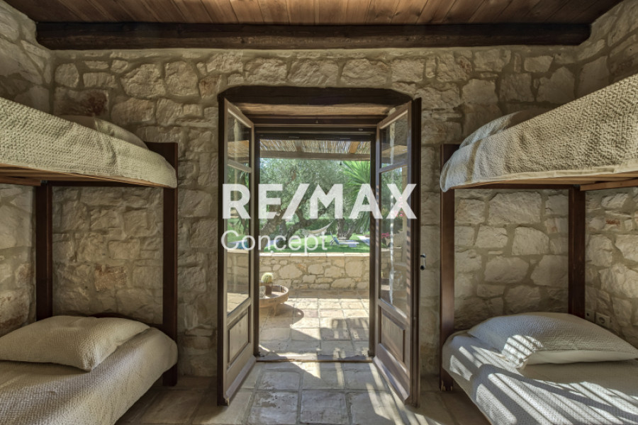 Property Code: 5-461A beautifully built stone maisonette of 187 sq.m., situated on a 4,973 sq.m. plot, is available for sale in the lush and tranquil area of Lithakia, Zakynthos. Constructed in 2006 with great attention to detail and aesthetics, the residence reflects the charm of traditional Zakynthian architecture. It is offered fully furnished and equipped, ready for immediate occupancy or for use as a profitable tourist rental property. The ground floor features a bright and spacious open-plan living and dining area with a fireplace, a fully equipped kitchen, two bedrooms, and one bathroom. An elegant internal staircase leads to the first floor, which comprises four bedrooms, two bathrooms, and a comfortable balcony offering uninterrupted sea views. All bedrooms are equipped with independent air conditioning units, ensuring maximum comfort throughout the year. The outdoor area is beautifully landscaped and designed for relaxation and entertainment. It includes a well-maintained garden, a private swimming pool of 37 sq.m., a BBQ area, storage room, and private parking space. Adjacent to the pool, a charming 27 sq.m. pergola provides the perfect setting for moments of leisure or social gatherings, surrounded by nature and the sea breeze. Lithakia is a privileged location, offering the ideal balance between peaceful living and proximity to everyday amenities. It is conveniently located close to shops, supermarkets, public services, and essential infrastructure, providing both comfort and practicality for year-round living. At the same time, the property lies just minutes away from some of the most beautiful and well-known beaches of Zakynthos, such as Agios Sostis and Laganas, as well as their respective vibrant tourist areas, which attract thousands of visitors each year from both Greece and abroad. This is a truly exceptional opportunity, ideal either as a primary or holiday residence, or as a high-yield investment property in one of the most attractive and developing regions of Zakynthos, offering privacy, natural beauty, and excellent accessibility to the island’s highlights.