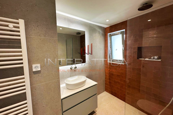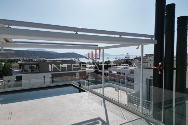 It consists of a bright and airy living room, which has an energy fireplace and large openings that offer unobstructed, panoramic sea views, an open plan kitchen ergonomically placed and designed with modern lines, three spacious master bedrooms, each with its own bathroom, offering absolute privacy and comfort, while there is also an elegantly designed guest WC.