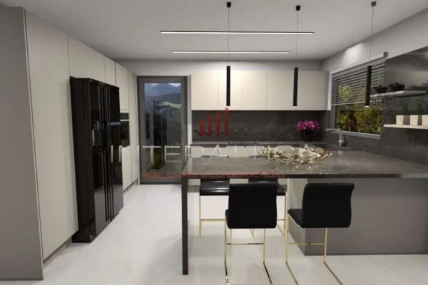 It consists of a comfortable and bright living room with a two-sided Energy Fireplace, an open plan kitchen with a dining area, 3 bedrooms of which 1 is a Master, 2 bathrooms, 1 wc with a shower, while it has 2 parking spaces, 1 in an open area, 1 space in the Basement with power supply for a car charger, and a storage room in the basement, 25 sq.m.