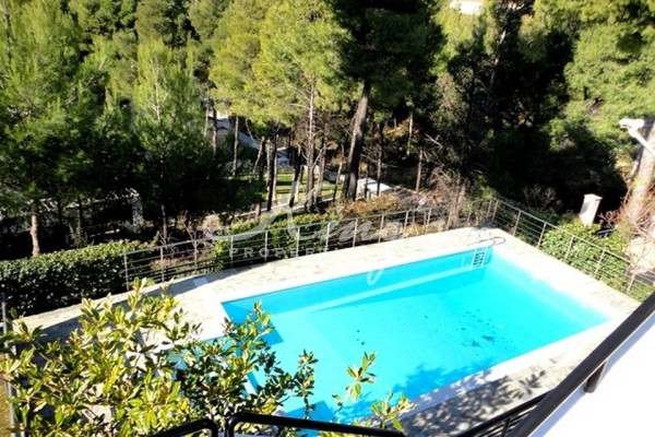 DIONISOS, in lush green environment, for sale, excellent detached house 390sqm, with swimming pool and beautiful landscaped garden, in a plot of 518sqm, renovated, in excellent condition, on the ground floor large living room, seating area with fireplace, dining room at a level, wc, separate large kitchen with electrical appliances, on the 1st floor 3 large bedrooms (one with fireplace, suitable for office ), large balconies, 1 large bathroom. Playroom on the ground floor opens onto the garden and pool, is completely independent, with kitchen, living room with fireplace, 1 large bedroom, bathroom with shower, storage, laundry. Autonomous heating per level, pre-installation for alarm system, boiler, closed parking, KING`S PROPERTIES - www.kingsproperties.gr - tel: +30210 8014300